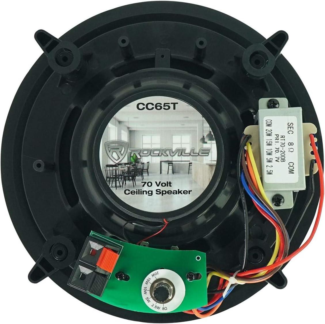 Package Includes: (1) Rockville RCS180-6 184 Watt 6 Zone 70V Commercial/Restaurant Amplifier/Bluetooth; (7) Pairs of Rockville CC65T Black 6.5″ Commercial 70V Ceiling Speakers For Restaurant/Bar/Cafe.