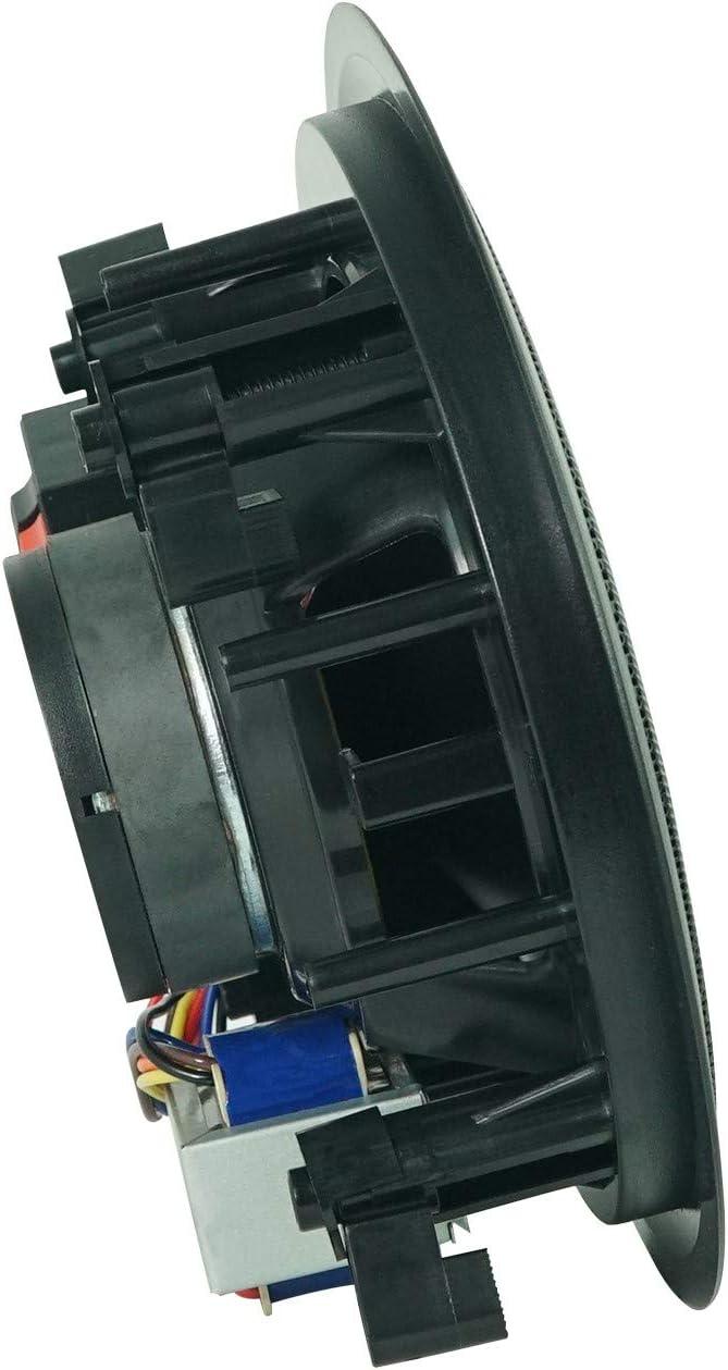 Ceiling Speakers Tuned For Clarity: Each CC65T pair features a 6.5″ polypropylene woofer and 0.5″ mylar tweeter for natural vocals and smooth background music. Selectable 70V taps (2.5-, 5-, 10-, 15-, 20-Watts) simplify balancing rooms; paintable flush grilles blend into decor. Spring-loaded terminals speed wiring, while the 8-Ohm option supports future reconfigurations without replacing speakers-ideal for evolving layouts in commercial spaces. 8-Ohm power handling: 40W.