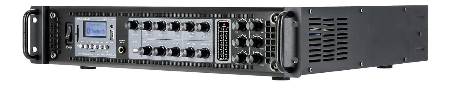 Powerful Output: 350 watts to drive 6 zones with clear audio across multiple areas. Zone Control: Adjust volume independently in each zone to match the environment. Versatile Connectivity: Bluetooth, USB, RCA, optical, and microphone inputs provide flexible audio options. Mic Echo & Chime: Echo control with speed and repeat adjustments plus a chime button for professional announcements. Commercial Durability: Rugged rack-mount chassis and cooling system ensure dependable operation.