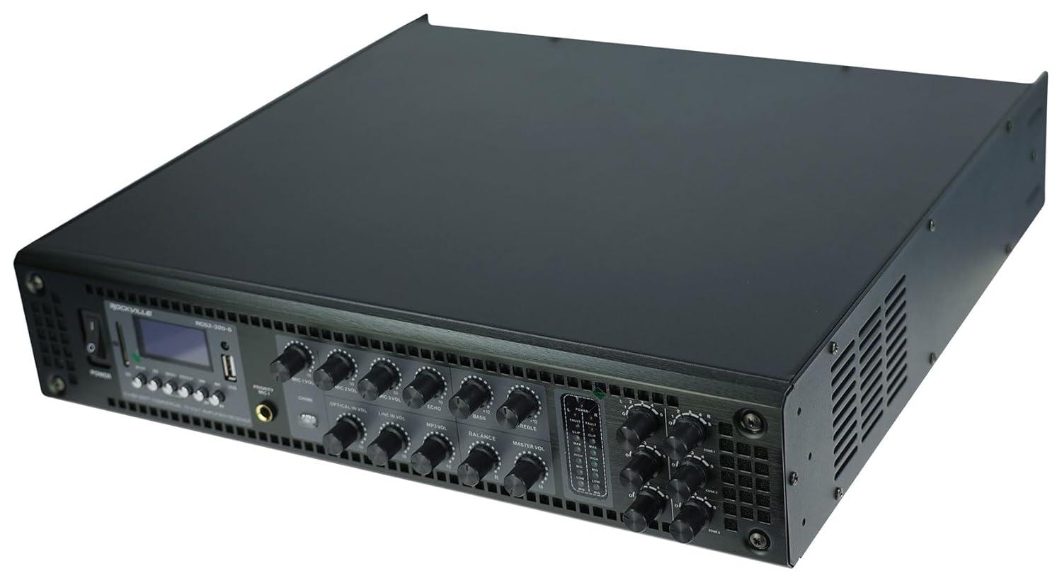 imageRockville RCS3506 350W 6 Zone 70V Commercial Amplifier Bluetooth USB Optical Rack Mount for Restaurants and Offices320w Stereo