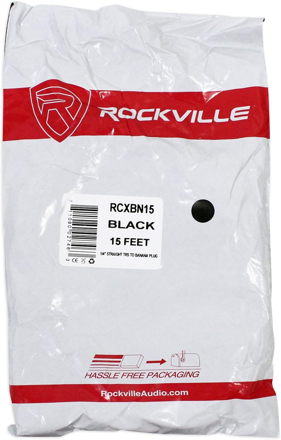 Rockville RCXBN15 15ft 1/4" to Banana Speaker Cable, 16 Gauge, 100% Copper, Durable PVC Jacket, Flexible Design for Home Theater, Studio, and DJ Systems