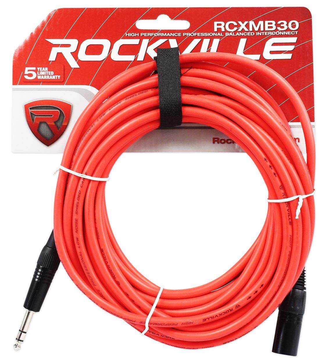 Rockville RCXMB30R 30ft Male XLR to 1/4” TRS Cable, 100% Copper, REAN Connectors, Durable PVC Jacket, Noise-Free, for Live Sound and Studio Recording(Black)