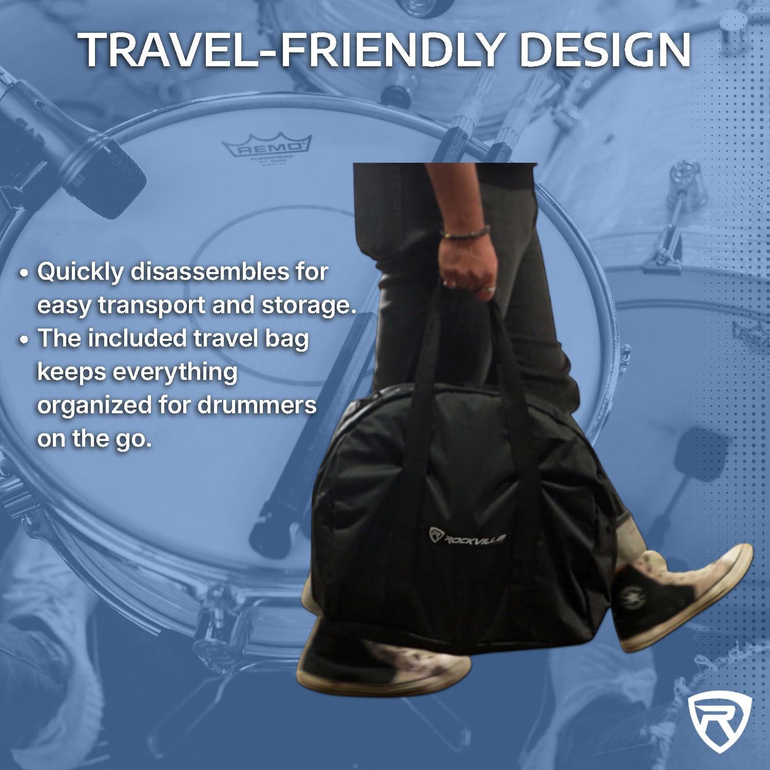 FOLDING FLAT & TRAVEL FRIENDLY – Quickly disassembles in seconds and folds flat for compact storage. Includes a durable travel bag for easy transportation, making it ideal for gigging drummers and home use.