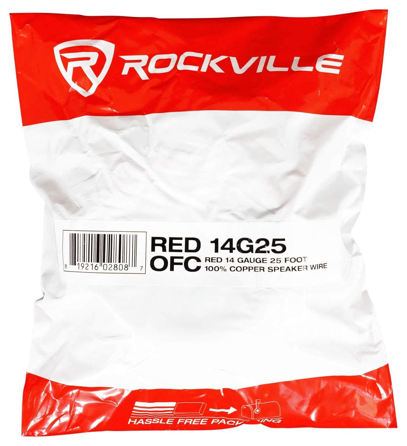 Rockville RED 14G25 14 Gauge 25 Foot 100% OFC Copper Speaker Wire, Tinned Marine-Grade Jacket, Flexible, Corrosion-Resistant, for Car, Marine, Home, and Outdoor Audio(Red)
