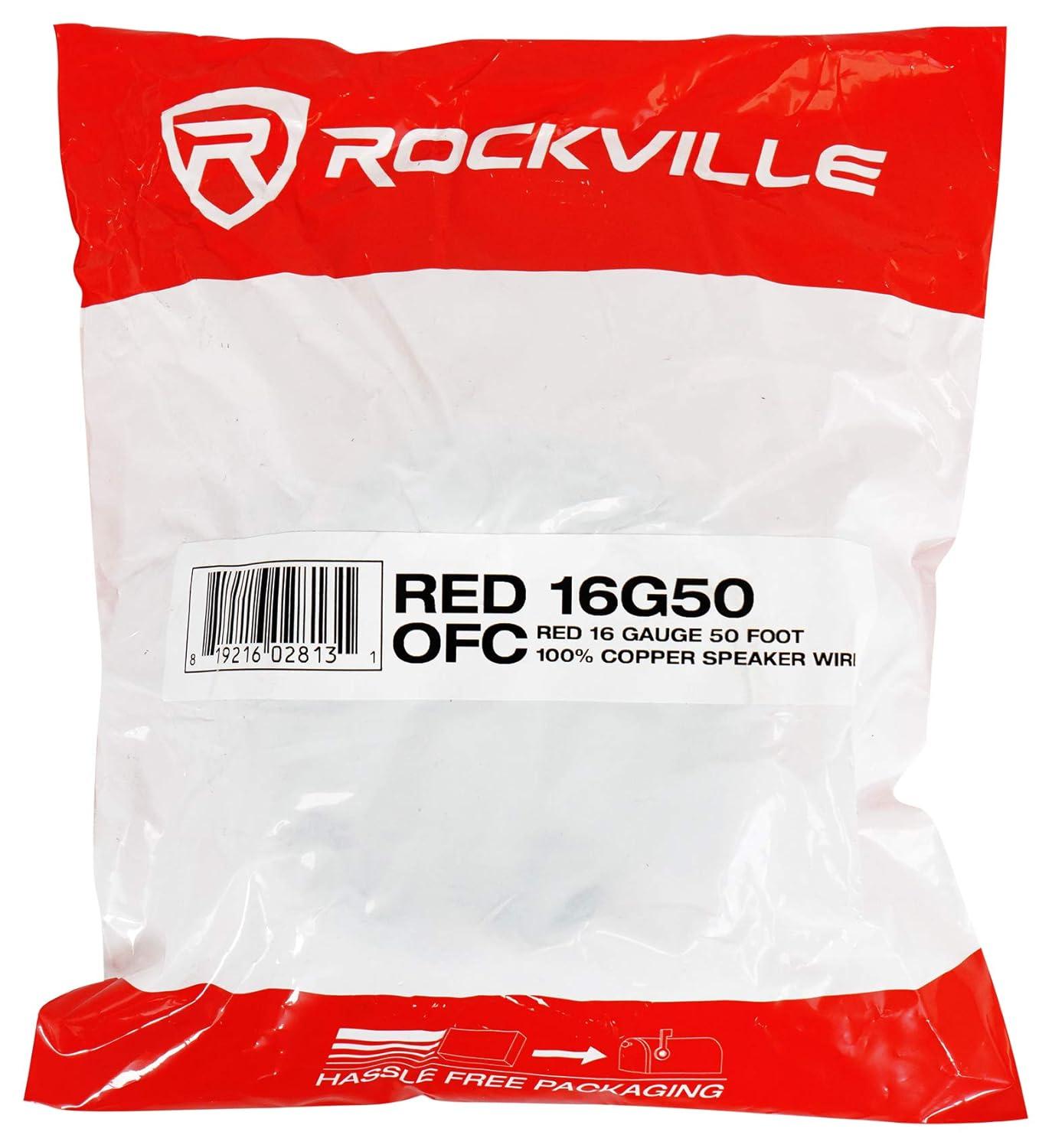 Rockville RED 16G50 16 Gauge 50 Foot Speaker Wire, 100% OFC Copper, Tinned Marine-Grade Jacket, Flexible and Corrosion Resistant, for Car, Marine, and Home Audio(Red)