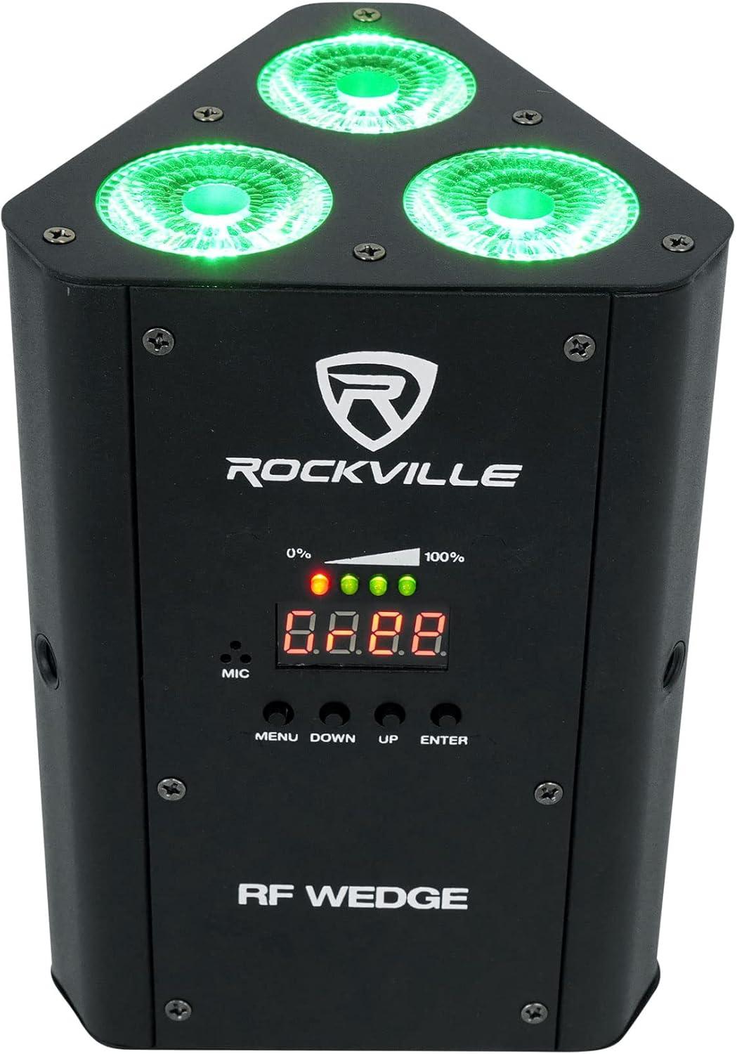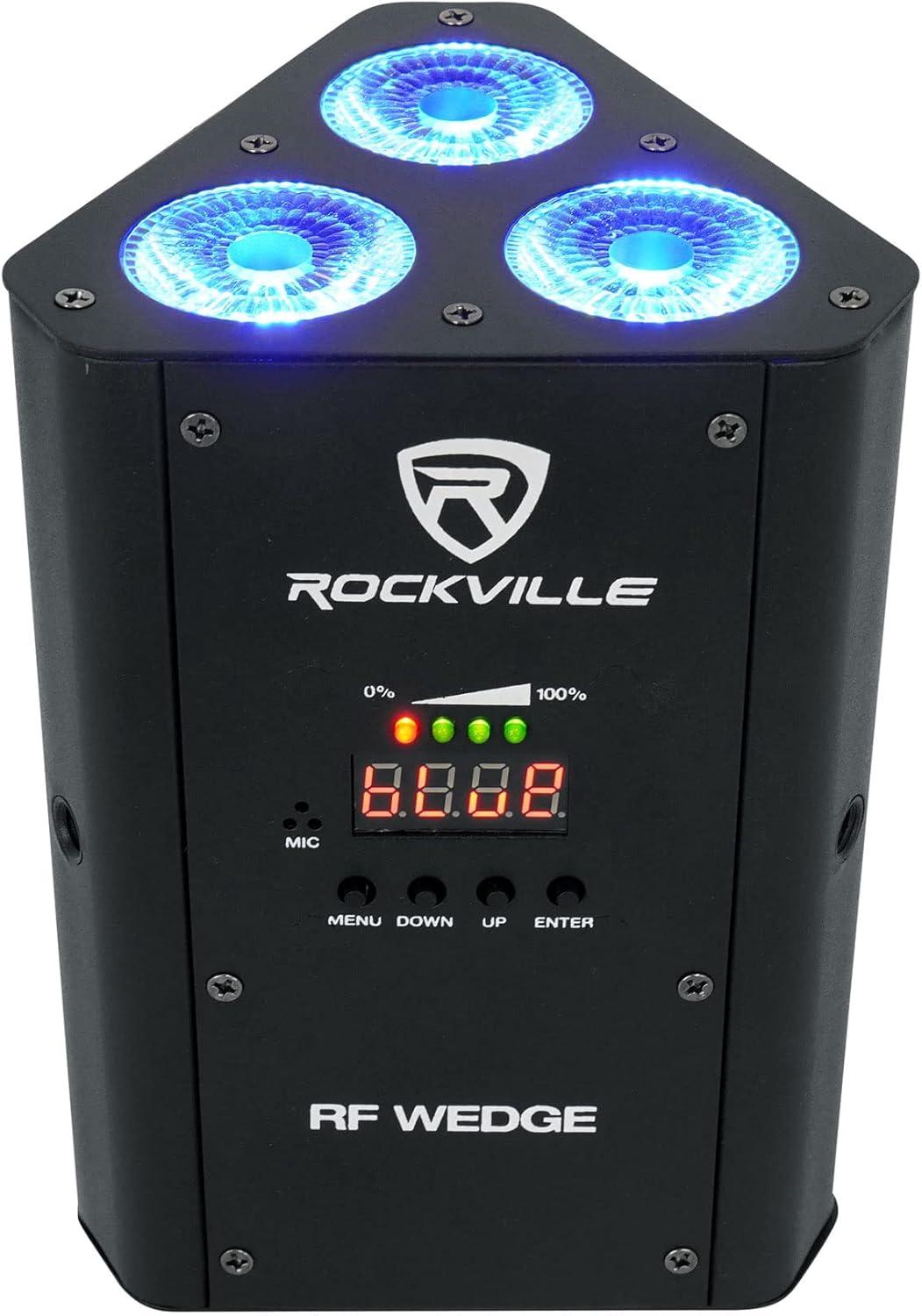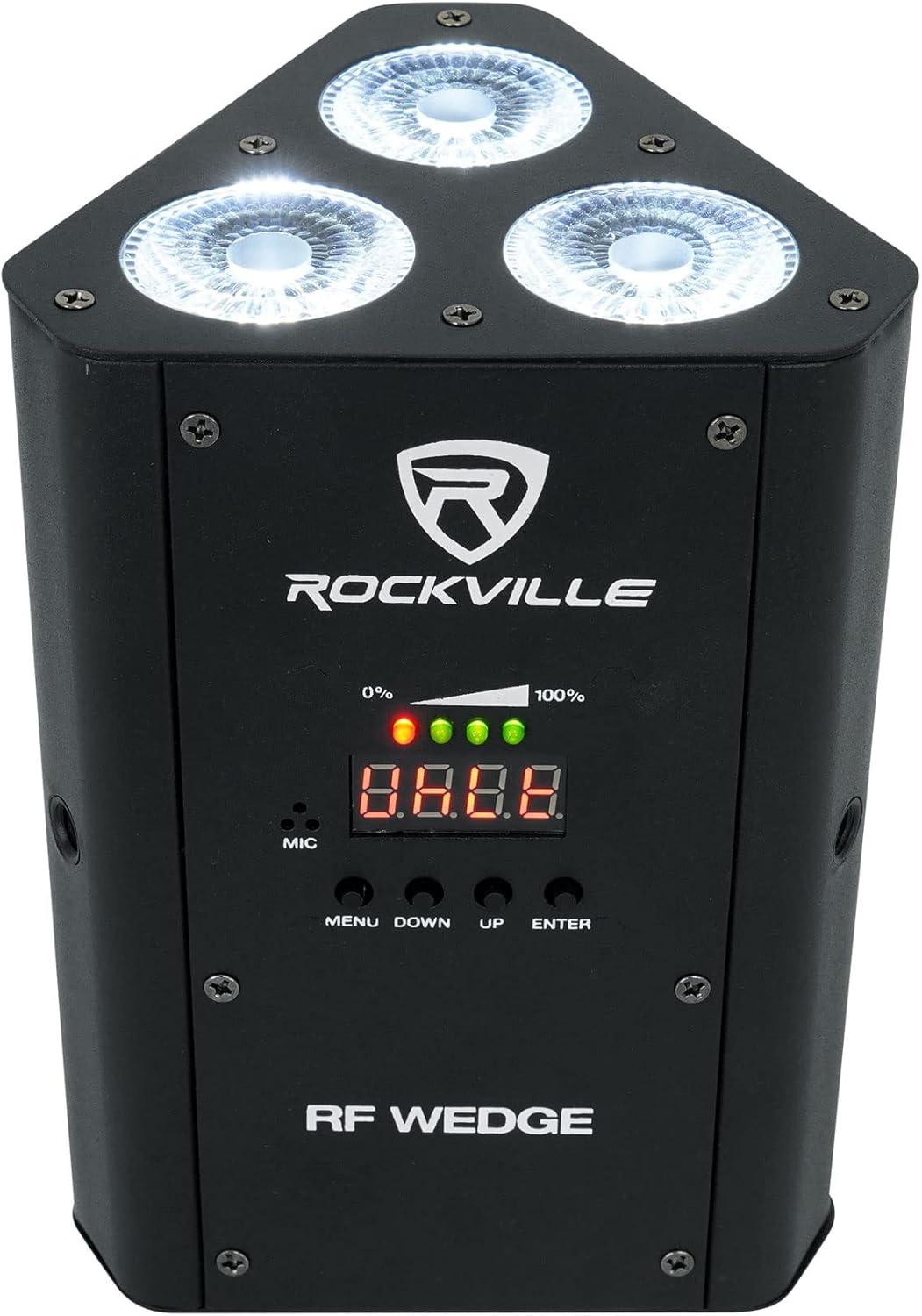 imageRockville RF WEDGE WHITE 54W RGBWAUV Battery Wireless DMX DJ Par Up Light Rechargeable RF Remote 24Hour Battery for DJs and EventsBlack