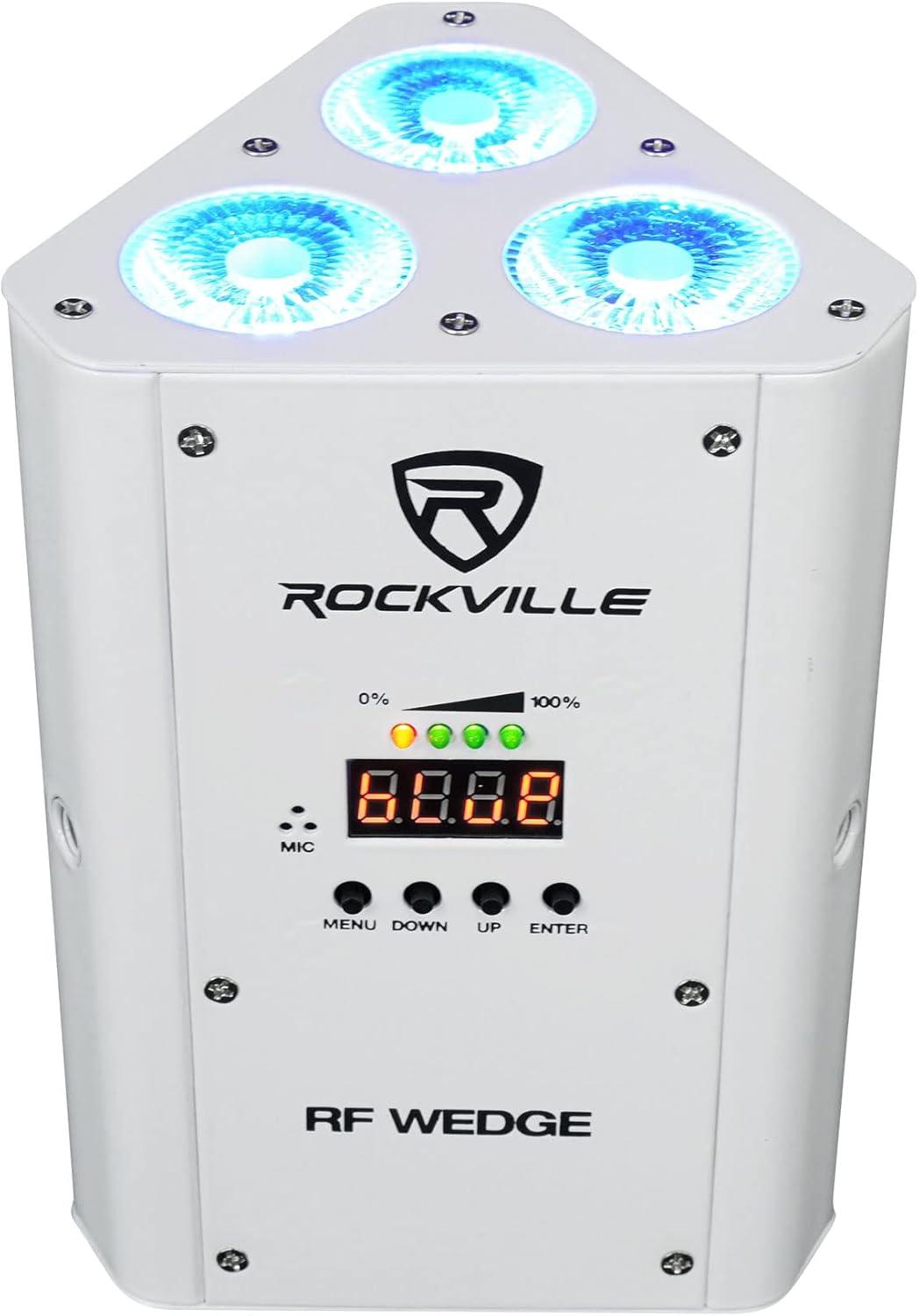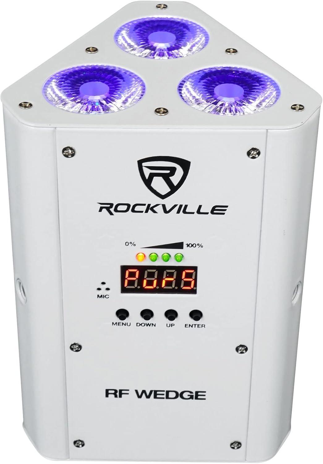 The RF Wedge White is an upgraded version of the Rockwedge LED light. This model has the following upgrades: 1. The RF Wedge has an RF remote instead of an IR remote. This is important because the RF remote has a long range of around 50-100 feet depending on the area, and the RF signal goes through walls and is not directional. What this means for you is that if you have 24 lights set up, you can just hit red once or twice and all of the lights will change at the same time without having to run to each light and point the remote at it. There are also 2 different RF channels if you want to control 2 separate groups of lights from the same remote. 2. We also added a tri-mode switch to this light. The modes are RF, Master, Slave/DMX. In RF mode the light will react to the remote as explained above. Once a light is set you can set it to be a master light (the remote will not control the light any longer but still leave the color/effect you set it at). You can then set your other lights to slave mode and set them to the same wireless channel color and they will just copy the setting from the master light (whether it is in sound activated mode, static color, etc). After you turn the lights all off and then back on they will all remember these setting for next time you use them.