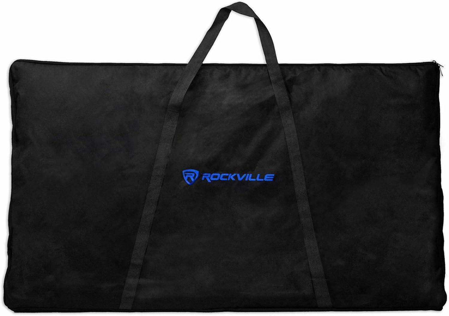 Rockville RFAAC DJ event facade with Black scrim and travel bag. (4) panels included – each are 27. 5” W x 47. 2” H. Light weight aluminum frames. The entire product weighs 7 lbs., around a third of the weight of our competitors who make their panels out of steel! Also our light-weight aluminum is much stronger than steel. Includes travel bag for easy transport. Includes Black scrim. Includes a carrying bag to store and keep facade scrim looking its best. Folds for easy break down and travel – no need to disconnect the hinges! . 360 Degree rotating panels allows each panel to be positioned to your liking with no limitations. Detachable hinges. Includes Black scrim made of a special stretch material. Scrim is fire retardant. Scrim is easy to wash – simply wash with cold water and lay it flat to dry. Non-slip rubber feet for stability. Expandable: add additional panels sold separately (models ripsaw and araba). additional Scrims available in our store in Black and white (models scab and rscfaw). product weight: 7 lbs. Packaged Shipping weight: 10 lbs.