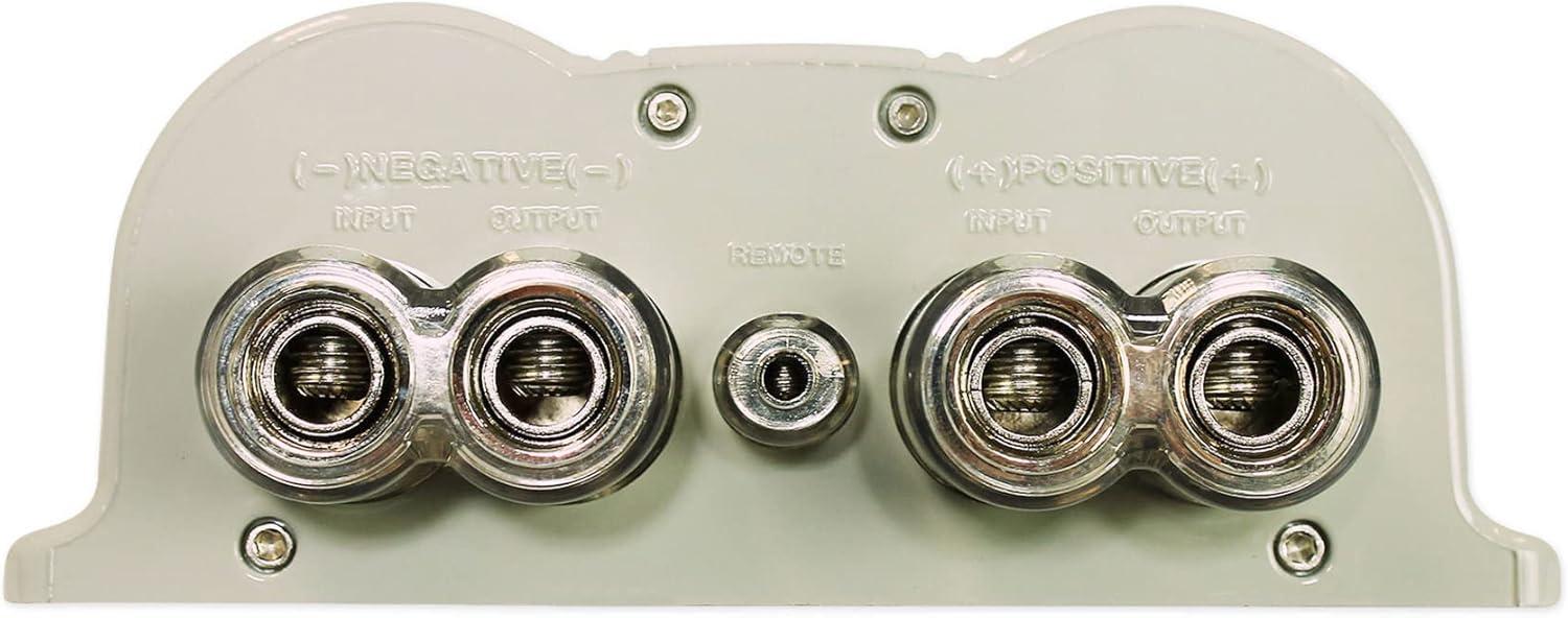 Rockville engineers have gone out of their way to design and put in your hands a high end capacitor at half the cost of our competitors similarly spec’d models. The RFC30F features a 3-digit super bright digital LED read out which displays the unit’s exact operating voltage to the decimal point. It comes equipped with heavy duty bolt down style platinum plated terminals which ensure a safe and solid connection. The built in IC Controlled circuitry alerts you if your voltage is too high (+17.5v) or too low (-10v). An automatic sleep feature helps the capacitor reserve power during lulls in volume levels, delivering it only as needed. With its sleek lines, modern styling and cool blue LED accents, the RFC30F will enhance the look of any sound system.