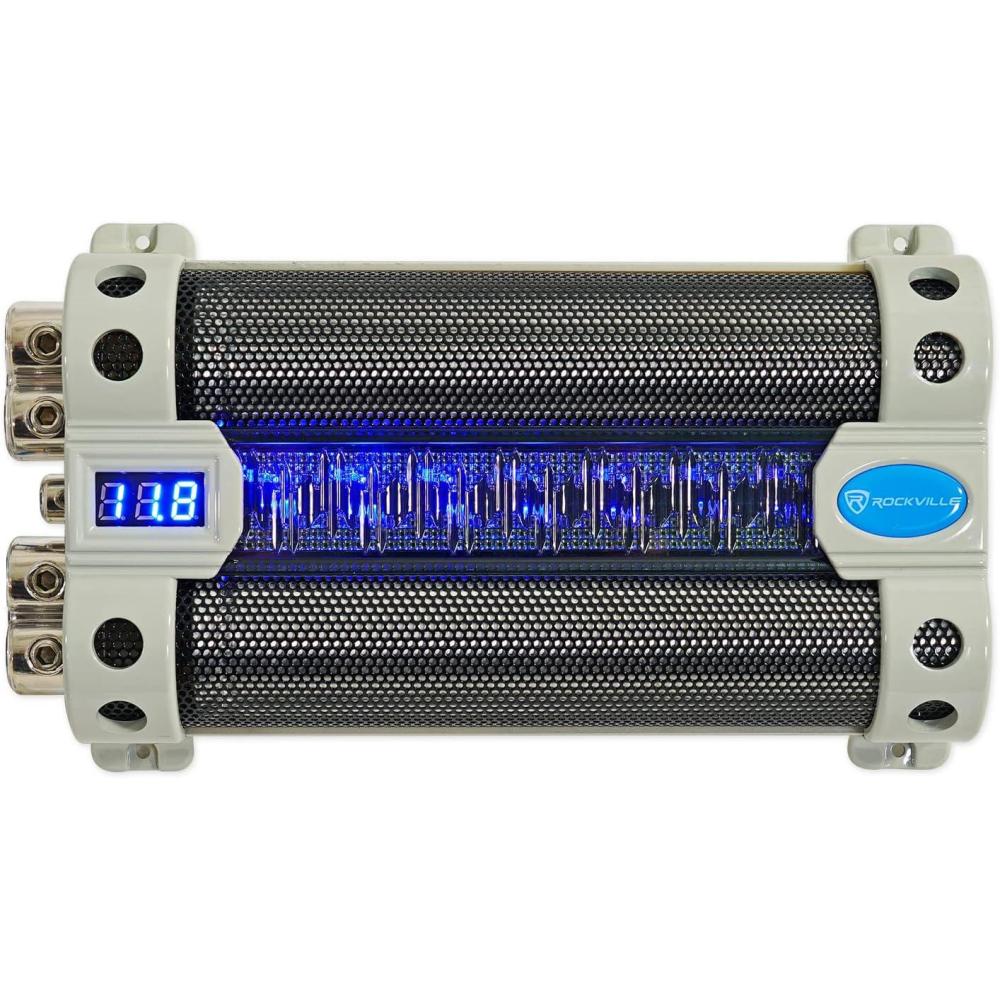Rockville RFC30F 30 Farad Capacitor, Blue Voltage Display, LED Meter, Sleep Mode, Reverse Polarity Warning, for High-Power Car Audio Systems