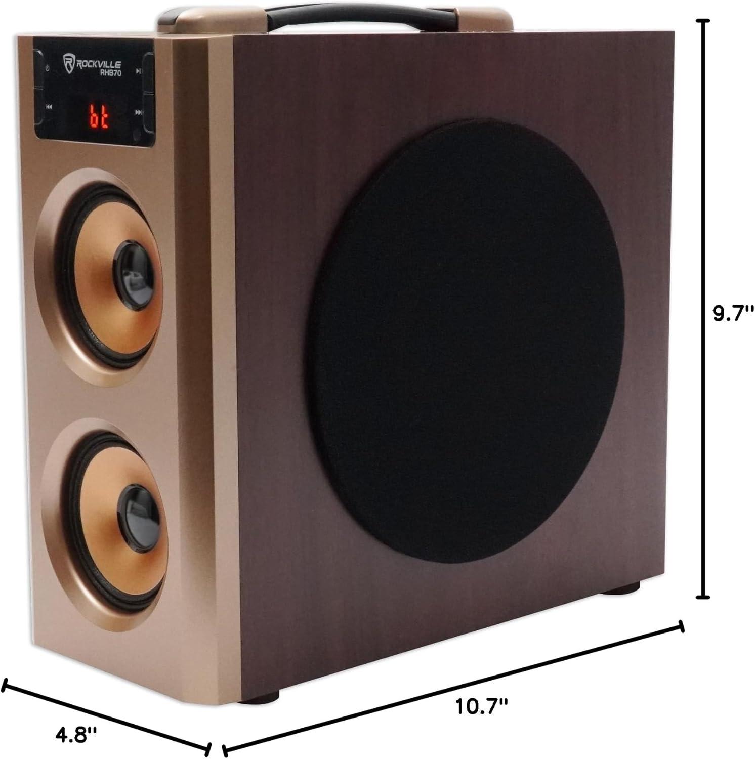 The Rockville RHB70 Compact Powered Speaker System delivers immersive 2.1 channel sound in a sleek cherry wood enclosure, perfect for home entertainment or office use. With a built-in 4″ subwoofer and dual 3″ speakers, it offers 25 watts RMS, 50 watts program, and 100 watts peak power to enhance your audio experience across movies, music, games, or radio.