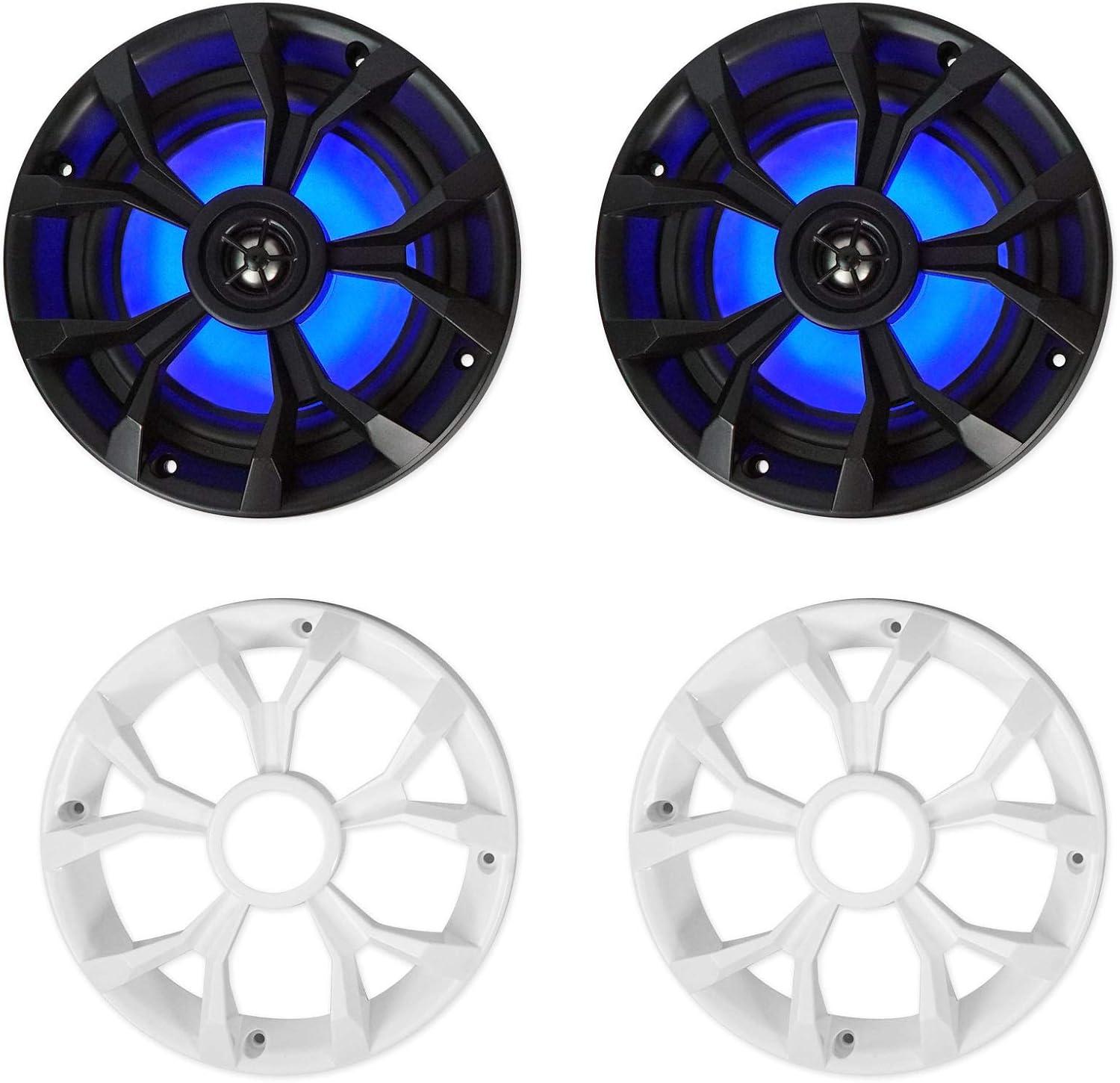 Rockville RKL65MBW 6.5″ 700W Marine Speakers, 4 Ohm, LED Lights, CEA Compliant, Coaxial, Waterproof, Black/White Grilles for Boats, ATVs, UTVs, 4-Pair