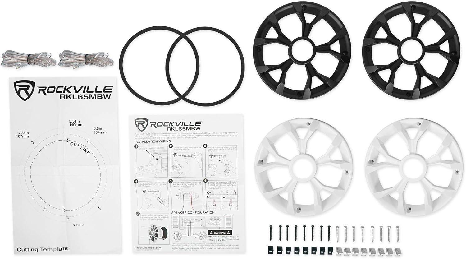 imageRockville RKL65MBW 65 700W Marine Speakers 4 Ohm LED Lights CEA Compliant Coaxial Waterproof BlackWhite Grilles for Boats ATVs UTVs 4Pair