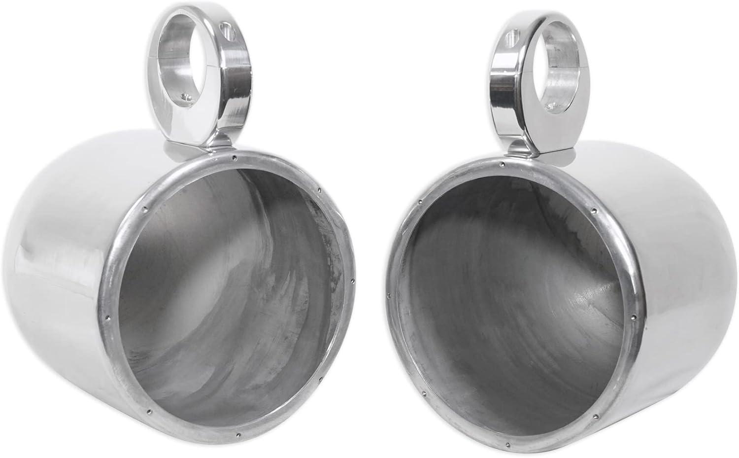 Complete Kit – Easy Install & Universal Fit: Install quickly on 2″-2.5″ tower tubes using precision rubber inserts (2.375″, 2.25″, 2.5″, 2″) and stainless hardware; internally routed wiring eliminates exposed terminals for a clean look. Pods accept most 8″ speakers (pre-drilled holes or drillable lip) and provide optimal airspace; MAC80S key dimensions are 7.4″ mounting depth, 9.5″ total depth, 6.95″ cutout, 7.95″ diameter, 7.47″ mounting diameter, 3.75″ mount height, 11.5″ total height.