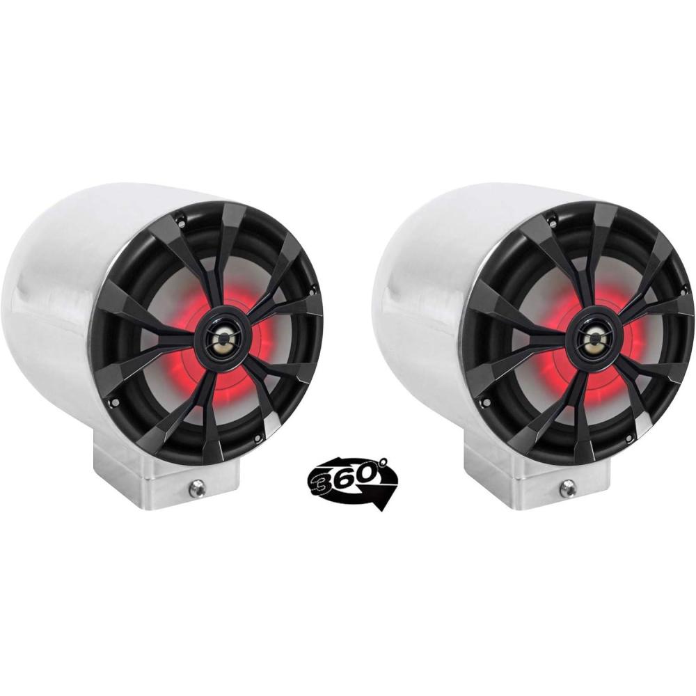 imageRockville RKL80MB Bundle Pair 8 900W peak400W RMS Surface Mount Boat Speakers wLEDs Pair MAC80S 77 Chrome Wakeboard Enclosures for 8 Speakers 2 MAC360C 360 Swivel Clamps 3Items
