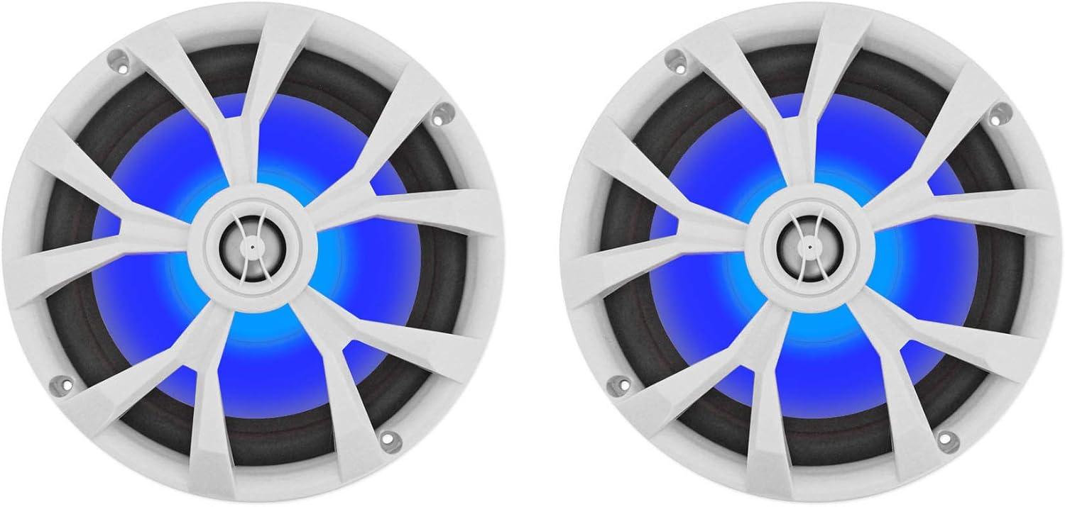 Integrated LED And Marine Protection: Each RKL80MW speaker features beat-sync LED lighting that flashes with the music and lets you select red or blue on the wire harness, powered through the speaker wire (no separate LED power needed). IP66 waterproof rating, fully marinized construction, UV-treated cone, anti-corrosion stainless steel terminals, and molded ABS housing help protect in saltwater/freshwater environments.