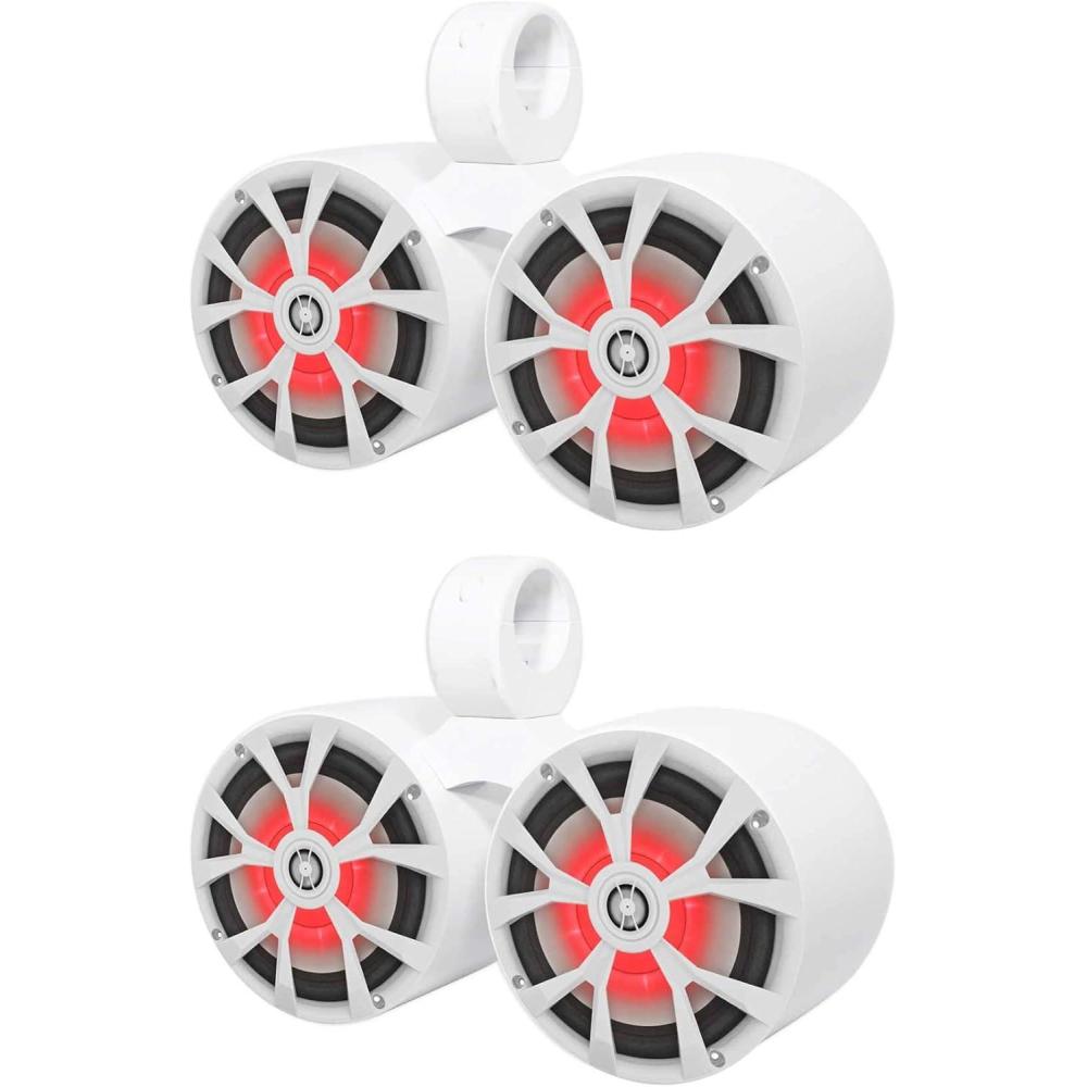 imageRockville RKL80MW Bundle 2 Pairs 8 in 900Watt Peak Marine LED Speakers 4 Ohm 40Hz20kHz 2 DMAC80W Dual 77 in White Aluminum Wakeboard Tower Enclosures 4Items