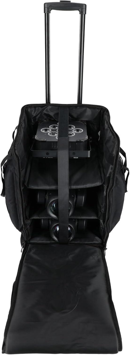 EASY MOBILITY: Built-in wheels and a retractable trolley handle allow smooth transport of heavy lighting gear, ideal for DJs and event organizers moving equipment to gigs or venues.
