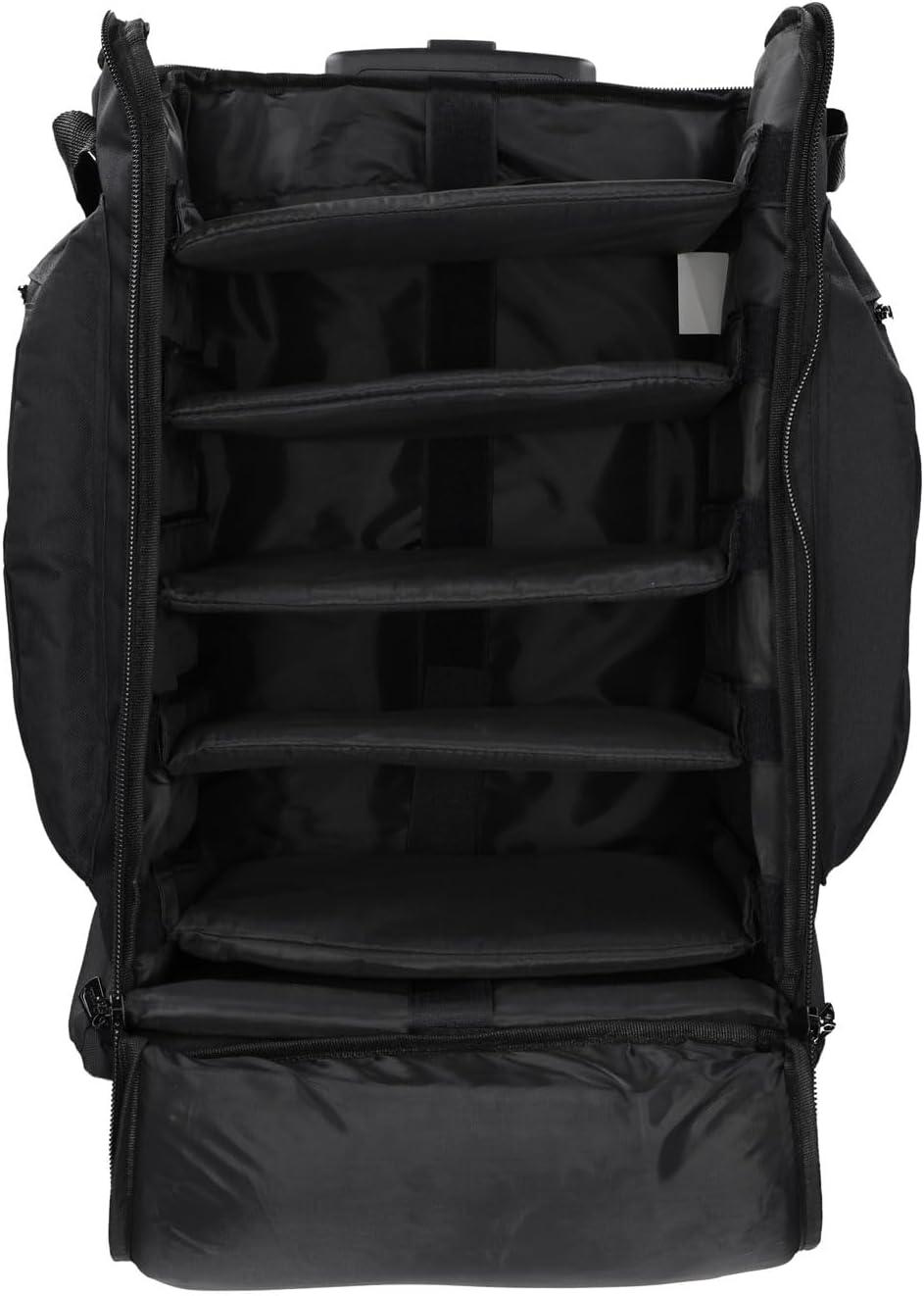 Rockville RLB50 Rolling Lighting Travel Bag, Fits Up to 6 Lights, Wheels & Handle, 6 Compartments, Movable Dividers, External Pockets, for DJs and Stage Professionals