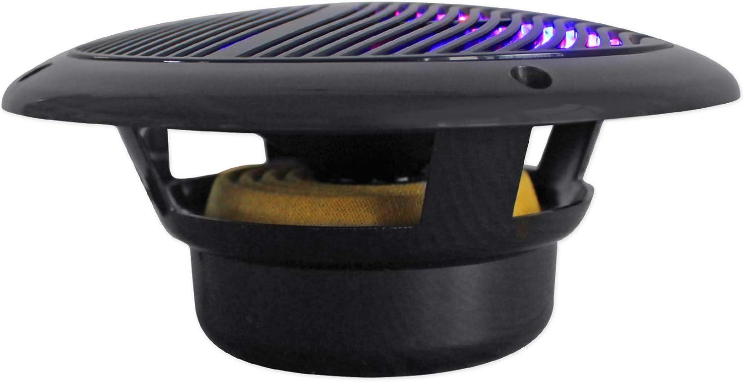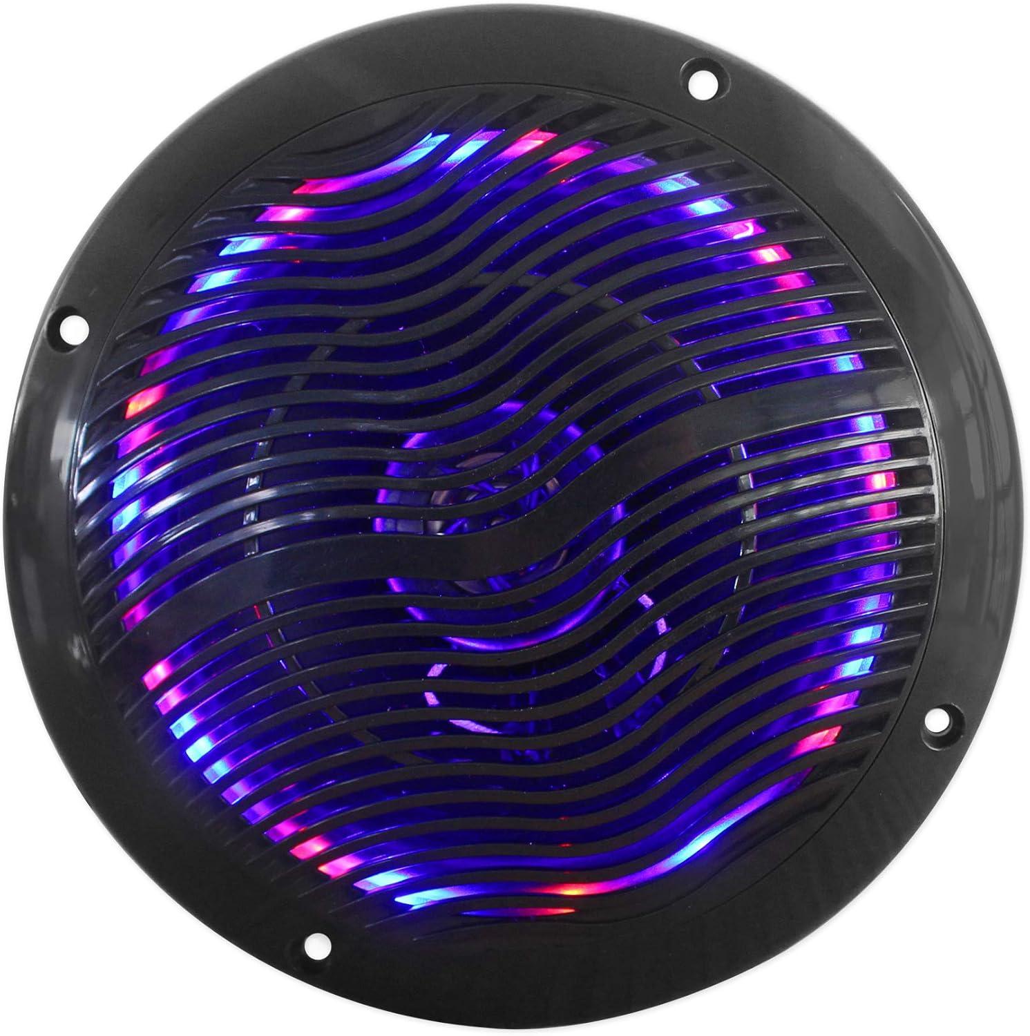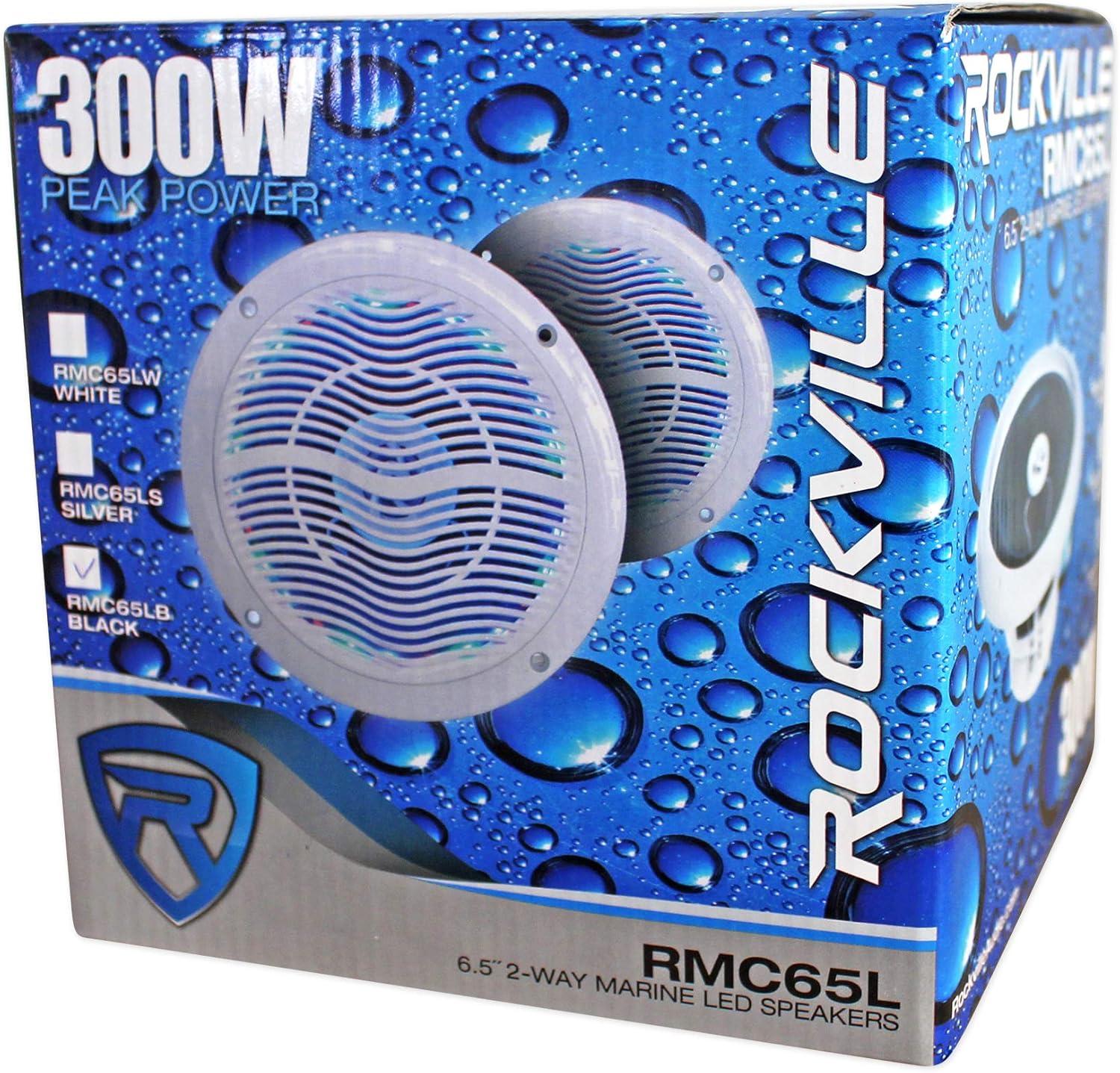 Package Includes: (2) Pairs Rockville RMC65LB 6.5″ 2-Way Marine Speakers w/ Multi-Color LED Light System and Remote.