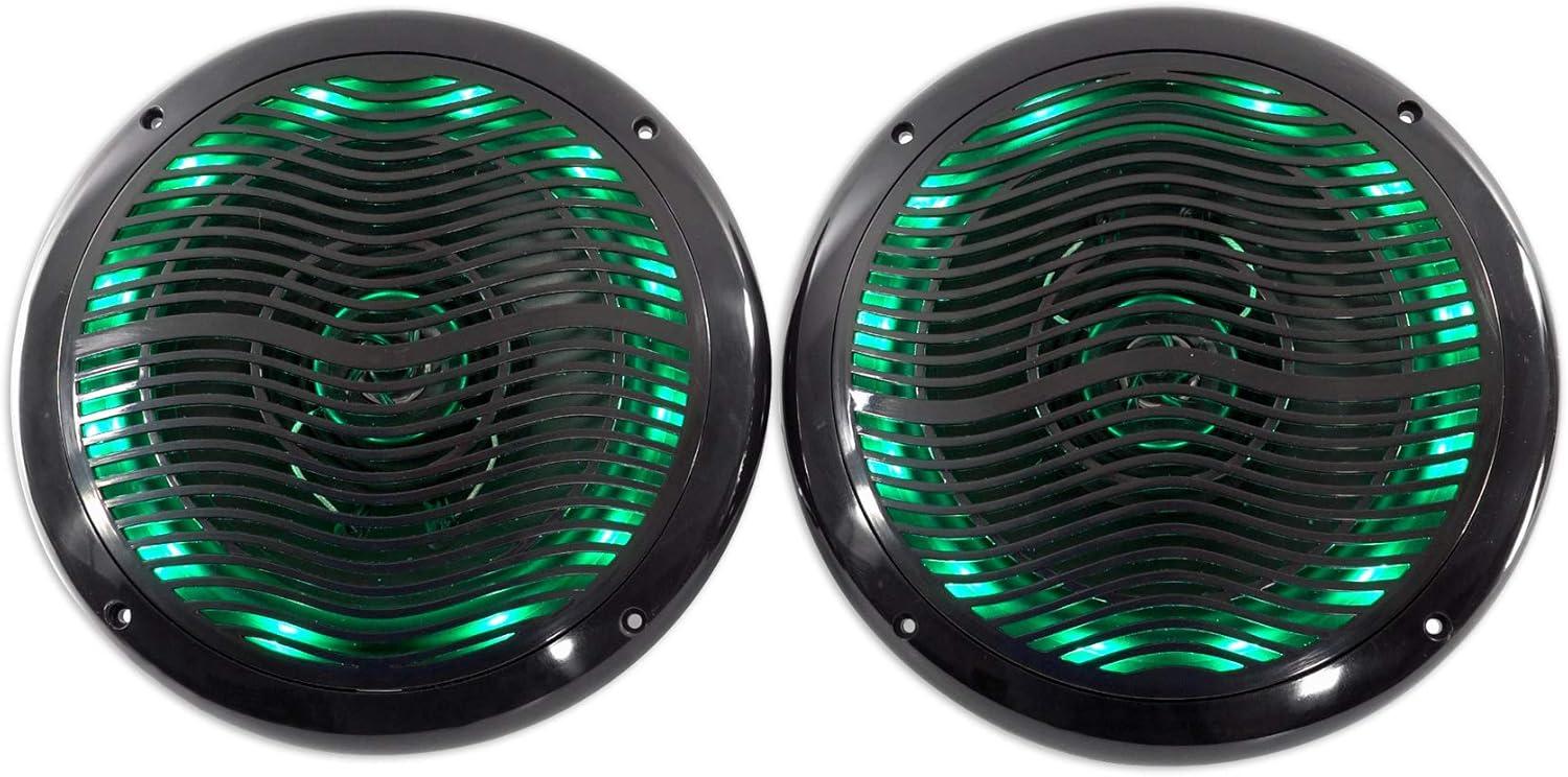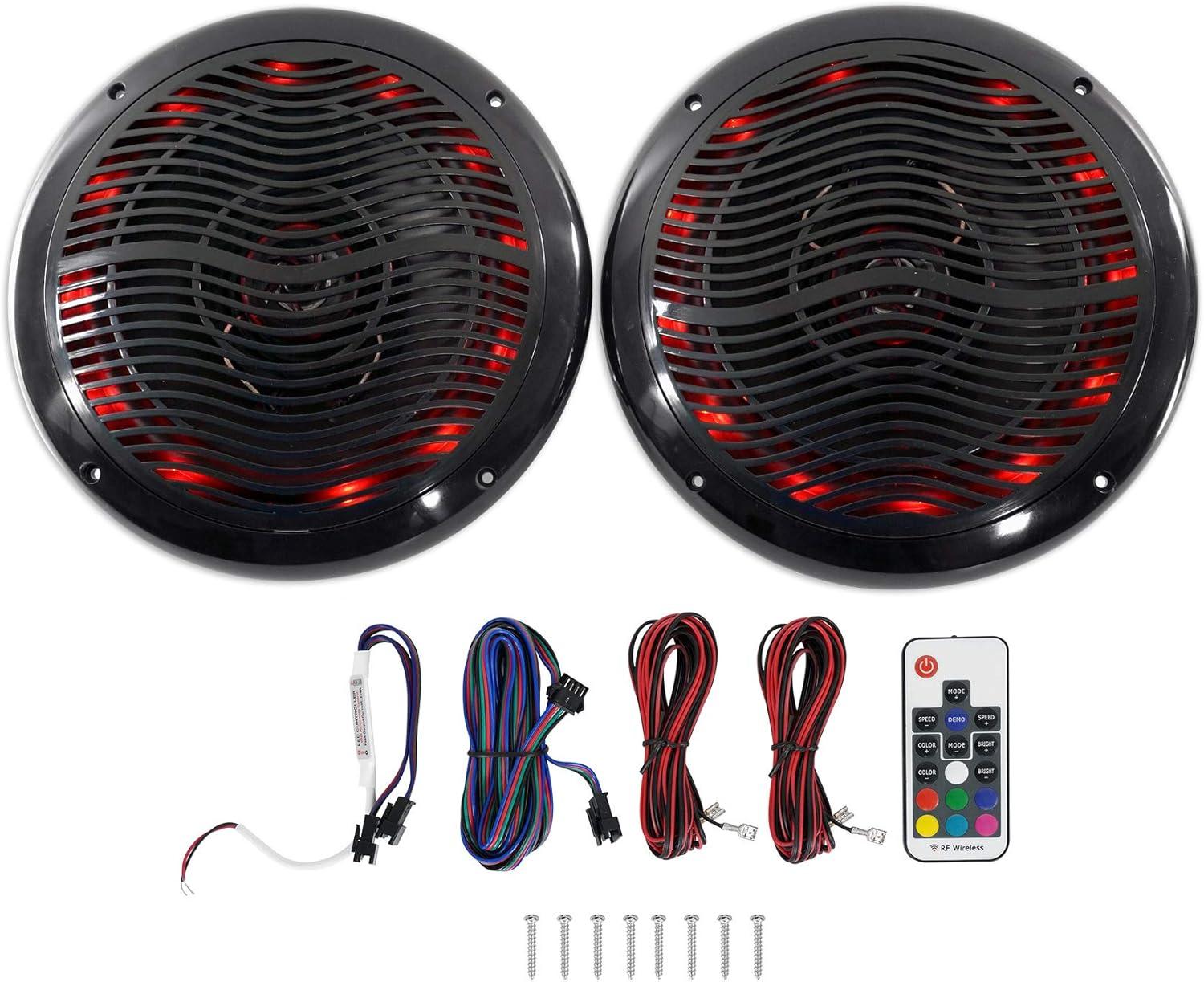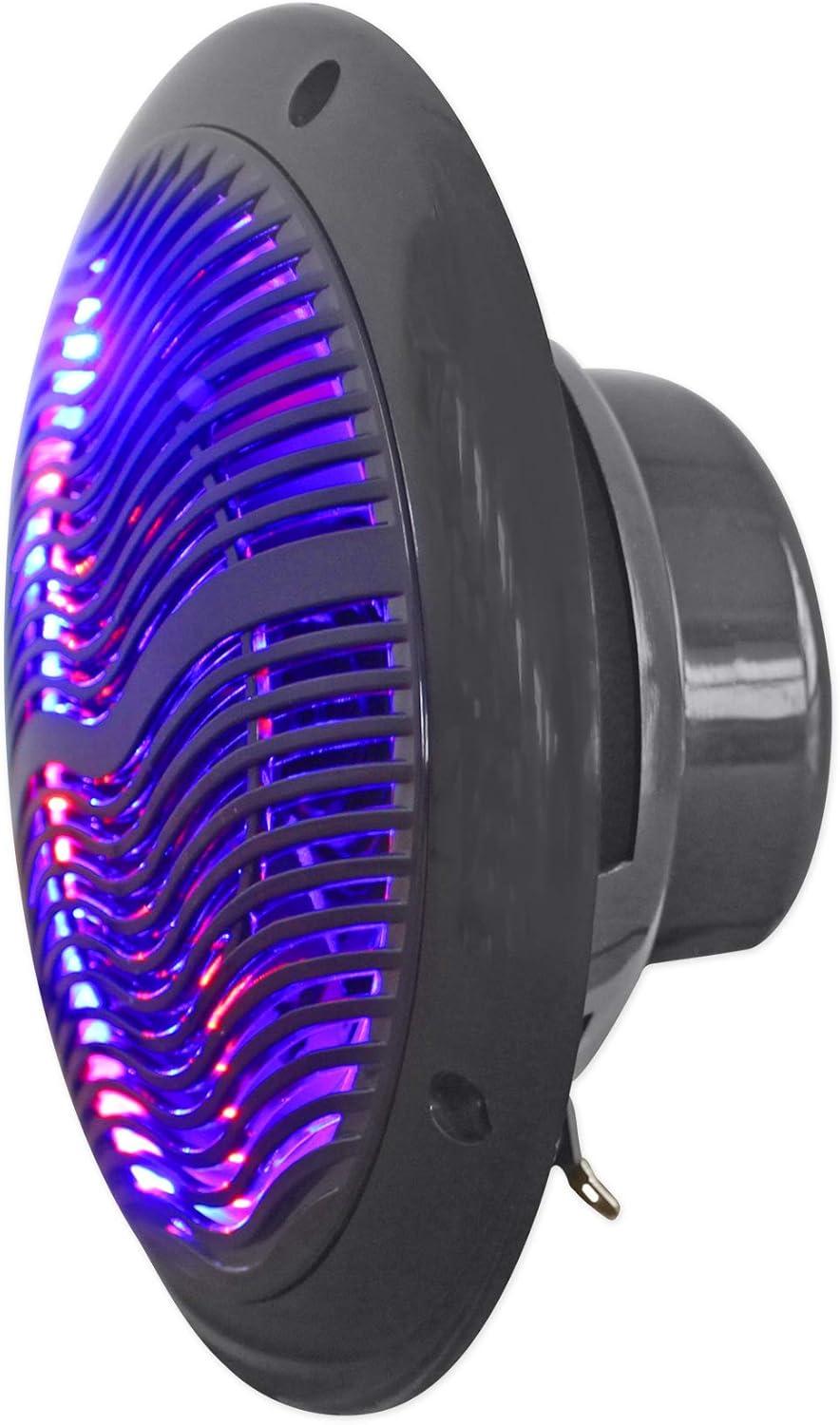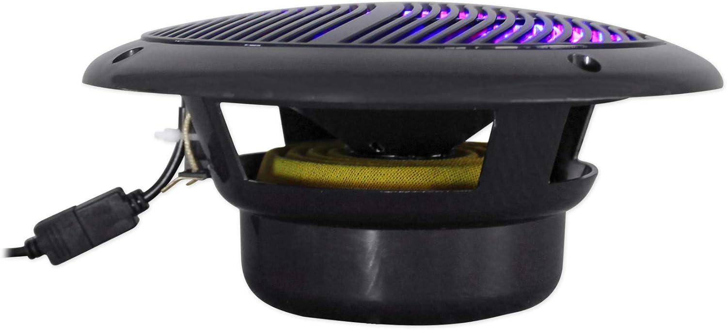 Package Includes: (2) Pairs Rockville RMC65LB 6.5″ 2-Way Marine Speakers w/ Multi-Color LED Light System and Remote.