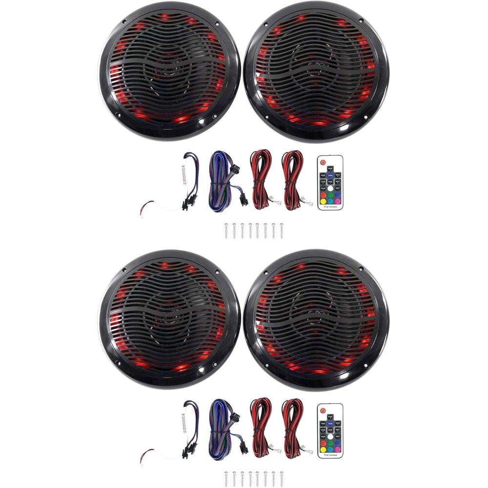 | Model Name | (4) Rockville RMC65LB 6.5″ 1200w Black Marine Speakers w/Multi Color LED+Remote |