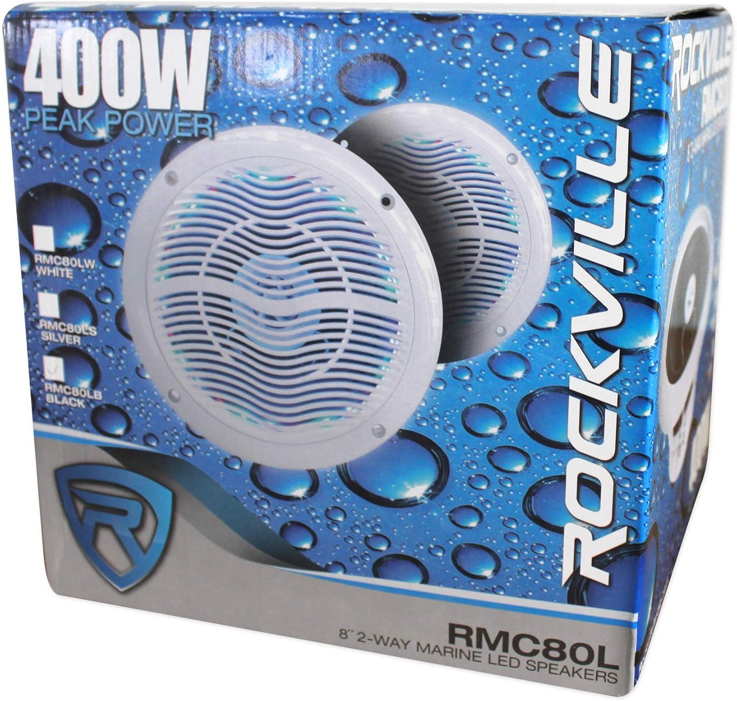 | Model Name | (4) Rockville RMC80LB 8″ 1600w Black Marine Speakers w Multi Color LED + Remote |