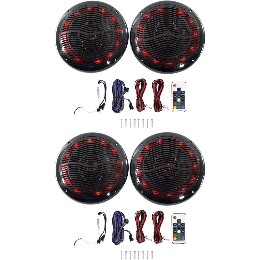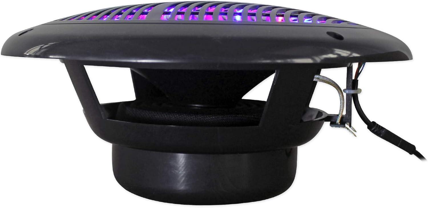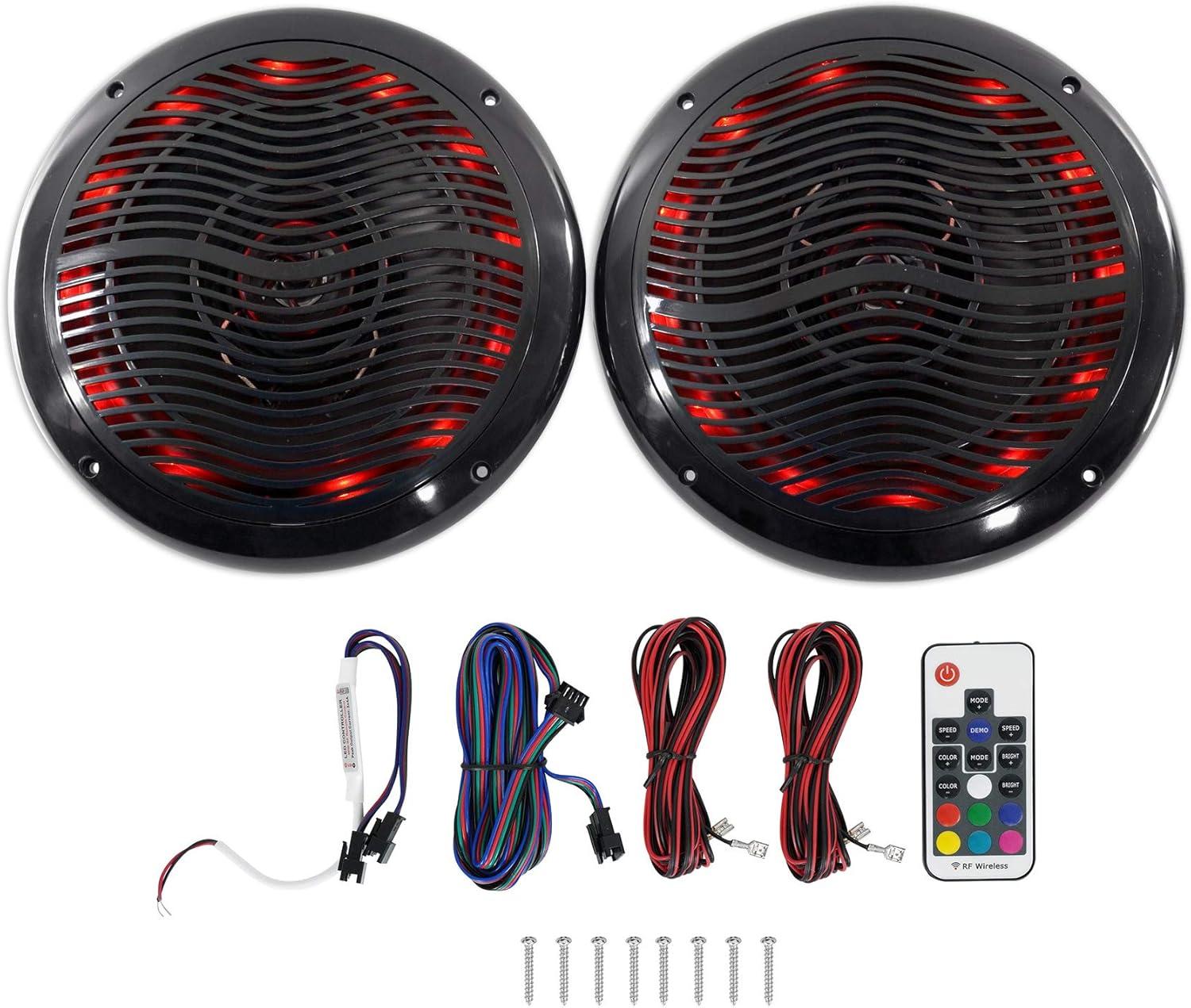 Dynamic Multi-Color LED Lighting: Built-in LED rings around each woofer produce vibrant, customizable light effects controlled by the included wireless remote. Perfect for nighttime boating or outdoor entertainment, the lighting adds atmosphere while complementing your vessel's interior or exterior style.