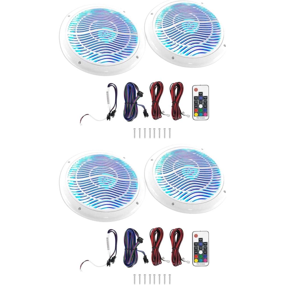 | Included Components | Pair of 8marine speakers, 16.4 feet of Speaker Wire, Mounting Screws, LED Remote Controller |
