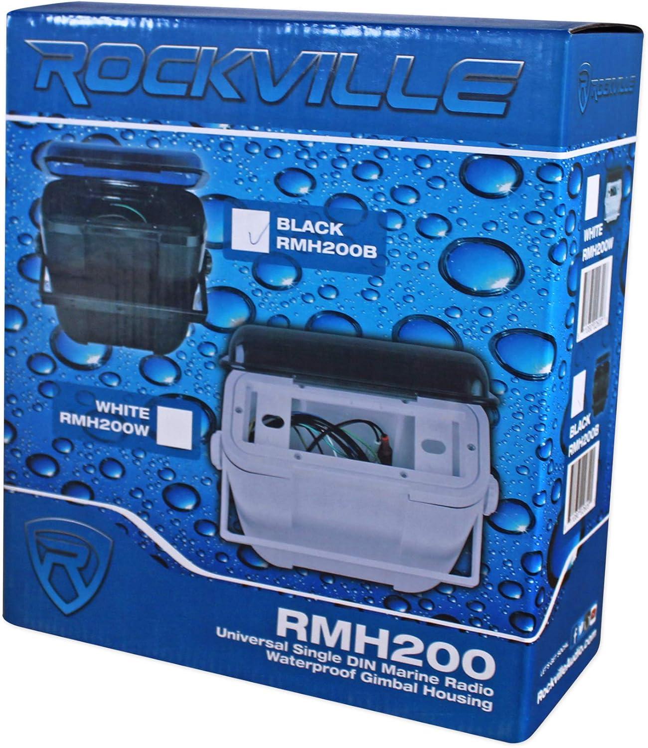 Rockville RMH200B Universal Single DIN Marine Radio Receiver Waterproof Gimbal