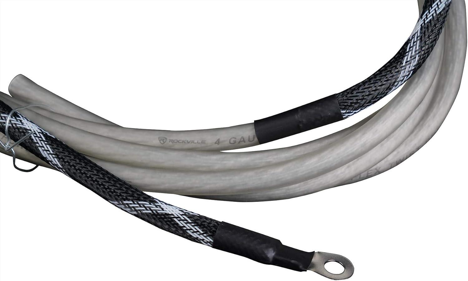 The Rockville RMWK4 is a complete 4 AWG marine amplifier wiring kit built for high-performance marine and car audio applications. It includes 18 ft. of high-current, low-impedance tinned-OFC power and ground wire, 20 ft. of twisted-pair RCA cable, a 25 ft. remote wire, and a 25 ft. speaker cable-everything you need to power your amplifier with low resistance and clean signal transmission.