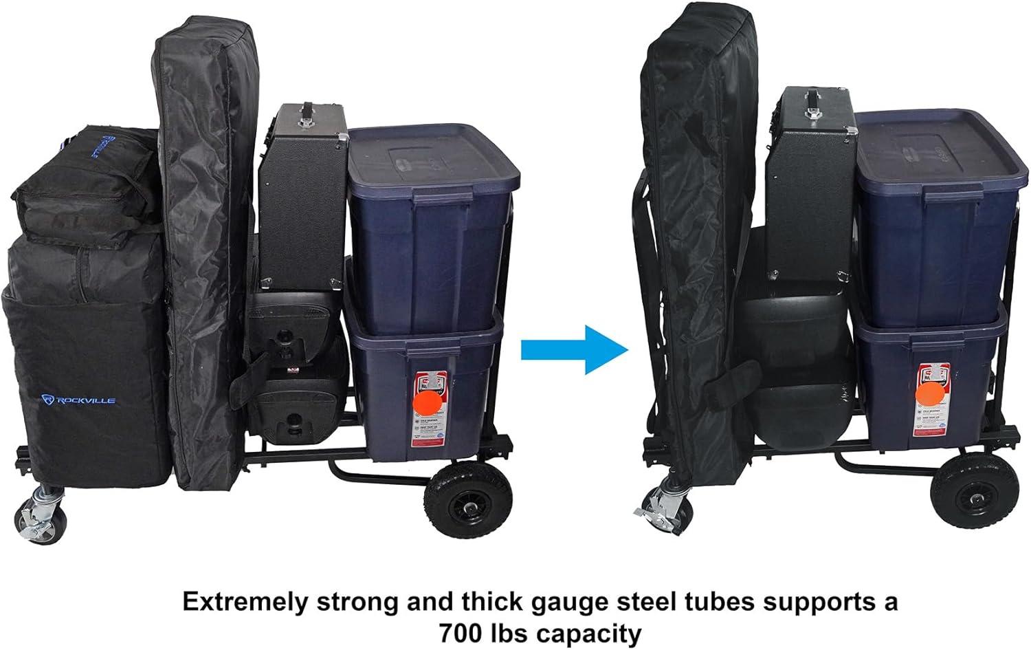 Rockville Rock Cart Off-Road DJ Transport Cart, Big Wheels, Smooth Casters, Wheel Locking, 700lbs Capacity, Folding, Steel, Perfect for Gigs & Events(Rock Cart Pro)