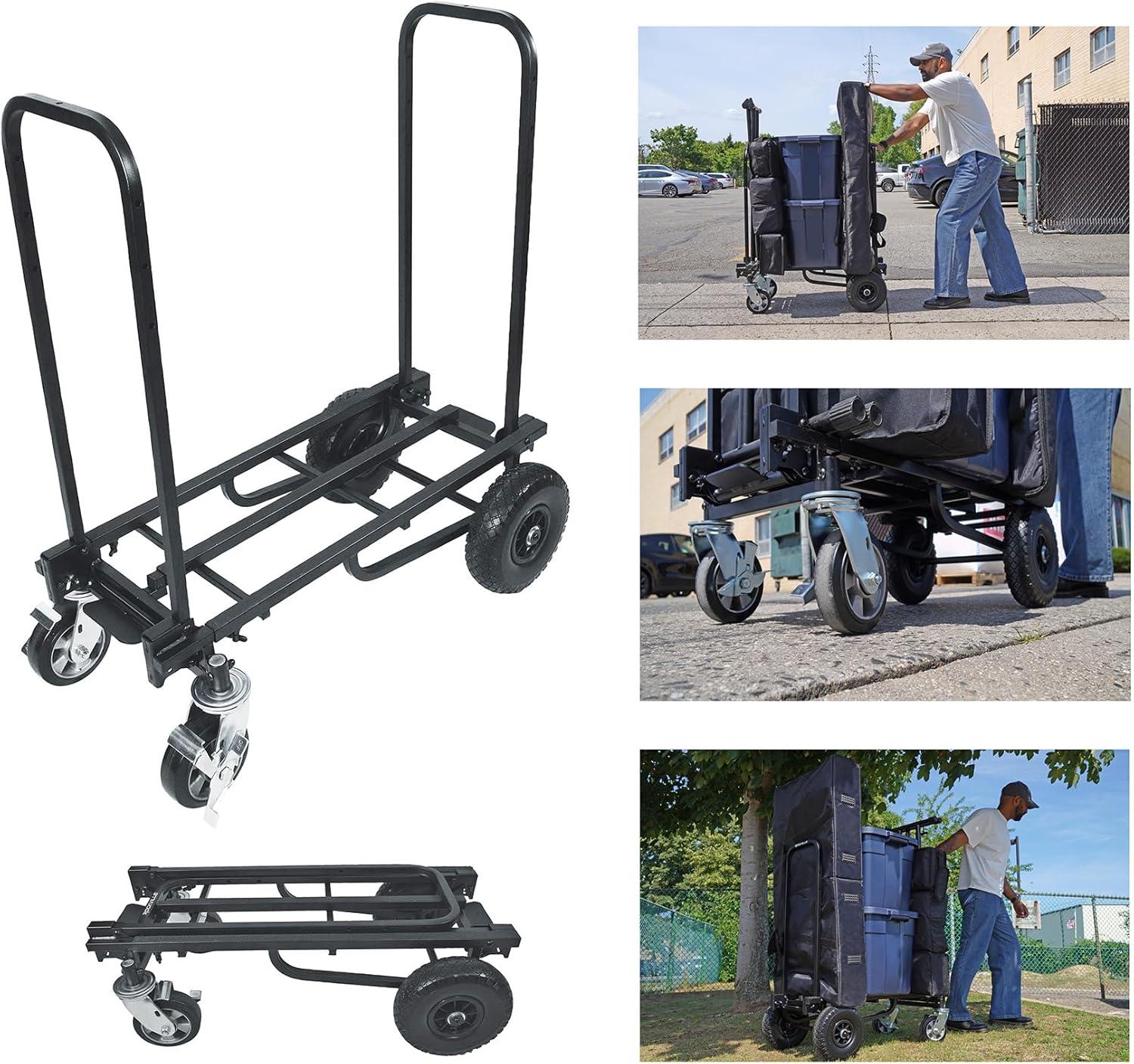 ADJUSTABLE & MULTI-FUNCTIONAL: Converts into a hand truck, dolly, or utility cart. Multiple adjustable length and height positions accommodate gear of various sizes. Perfect for DJs, performers, and professionals needing versatile transport solutions.