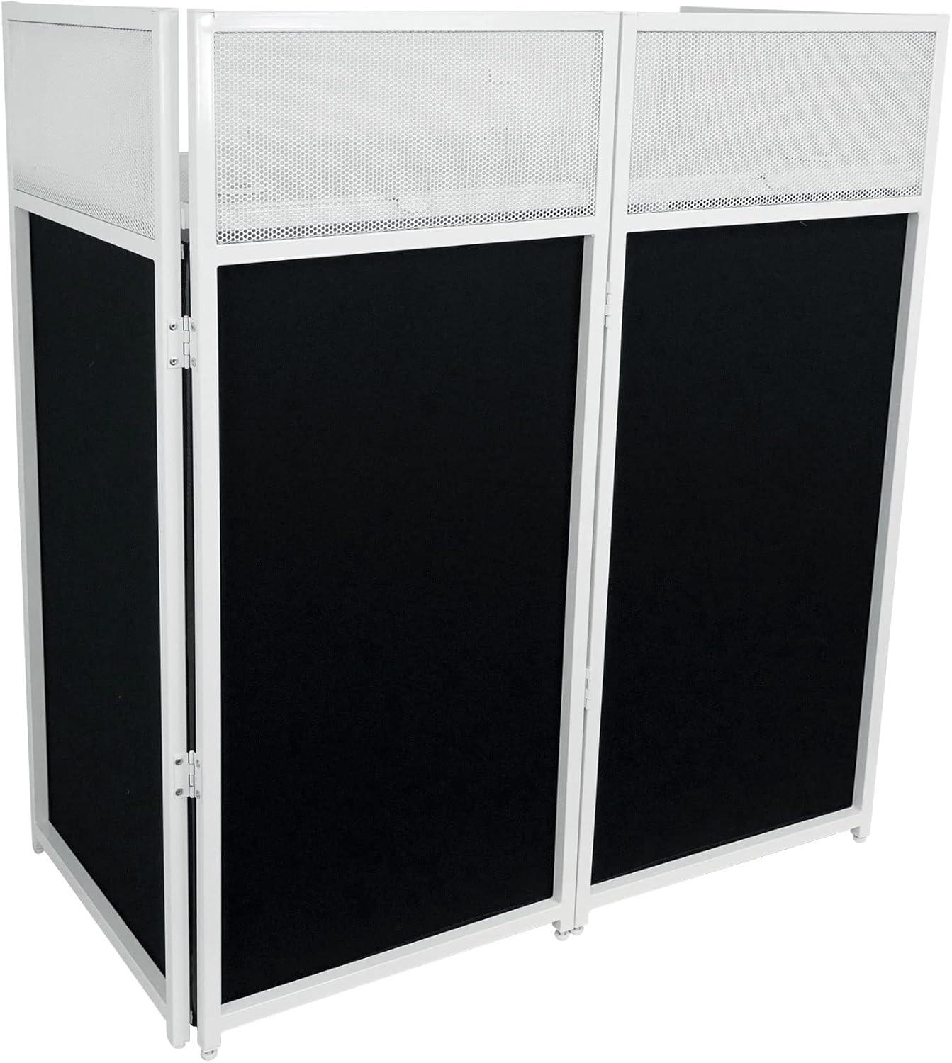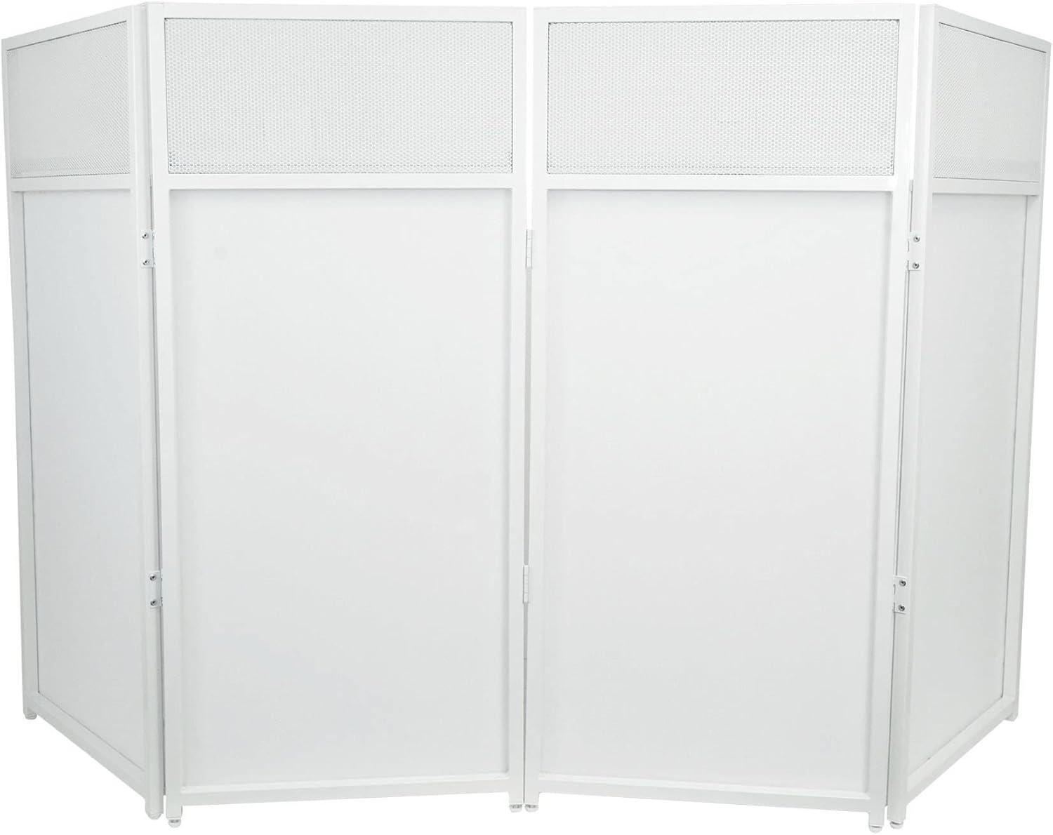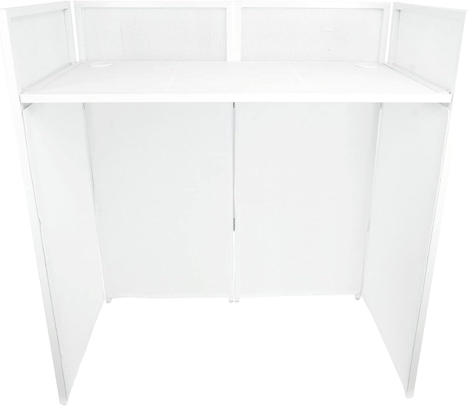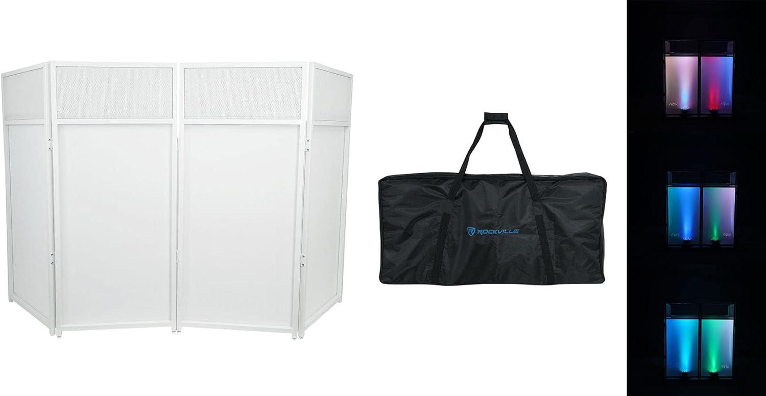 Rockville ROCKBOOTH DJ Event Booth Facade w/ 39.5" x 20" Table, Detachable Table, Black/White Scrims, Travel Bag, for Mobile DJs and Event Professionals(White)