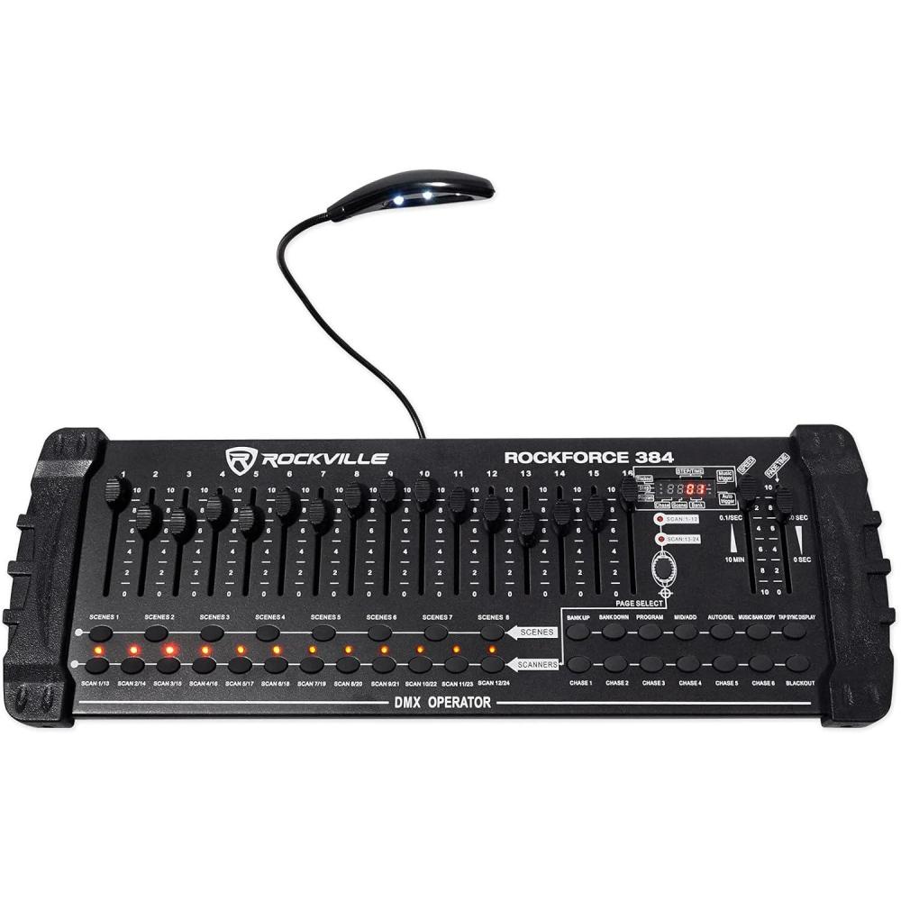 The Rockville ROCKFORCE 384 Channel DMX Light/Fog Lighting Controller is built for DJs, stage managers, and lighting professionals who need dependable, precise control over complex setups. With 384 DMX channels, it operates up to 24 intelligent lights with 16 channels each, making it a strong choice for clubs, concerts, theaters, and events. Its rugged metal housing and intuitive layout make programming straightforward, even for beginners.