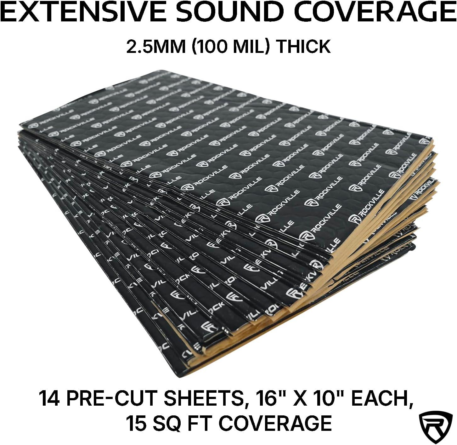 imageRockville RockMat 5015 50 Sq Ft Butyl Sound Deadening Mat 15MM 60 Mil Aluminum Foil Backing Adhesive Precut Sheets Reduces Road Noise and Vibrations Car Truck Van RV Marine15 SQ FT  100 MIL