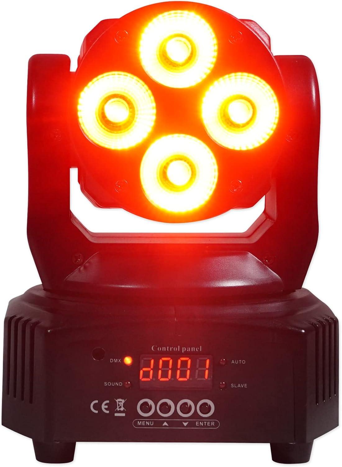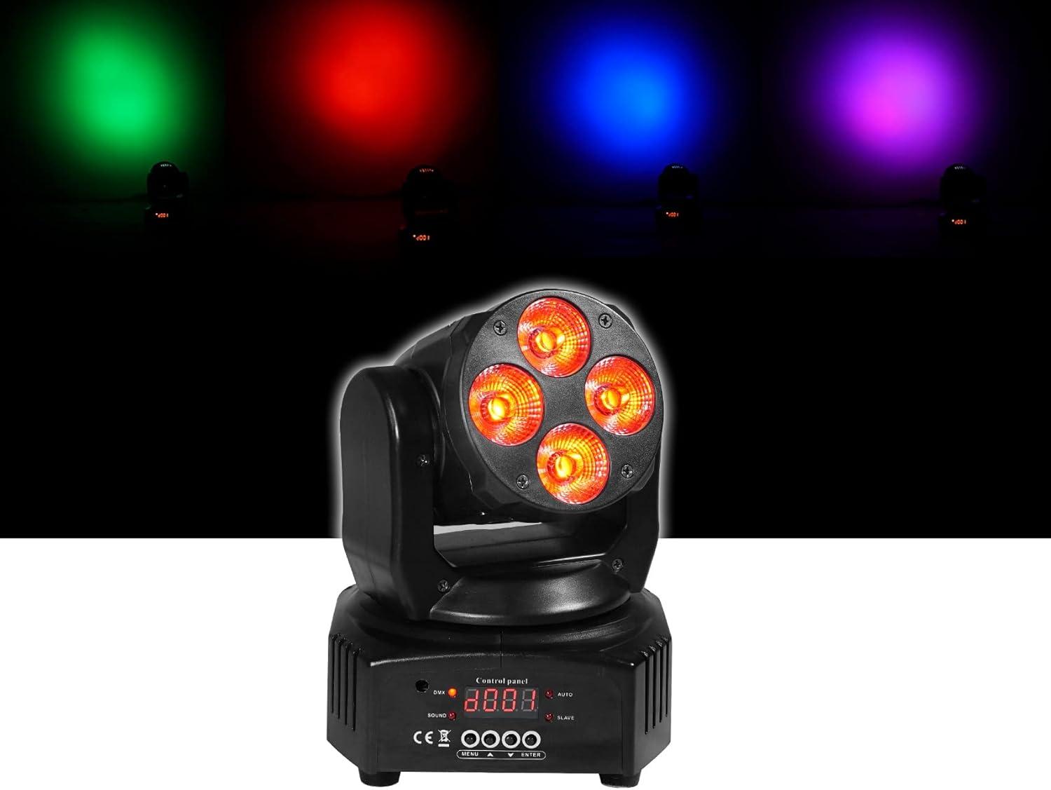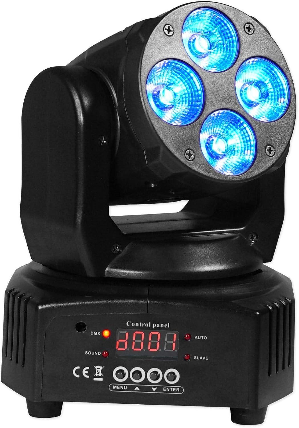 imageRockville RockOn7 40W RGBW Moving Head Wash Light 4x10W LEDs DMX ampamp Sound Modes FullFunction Remote for DJs Clubs Stage Lighting