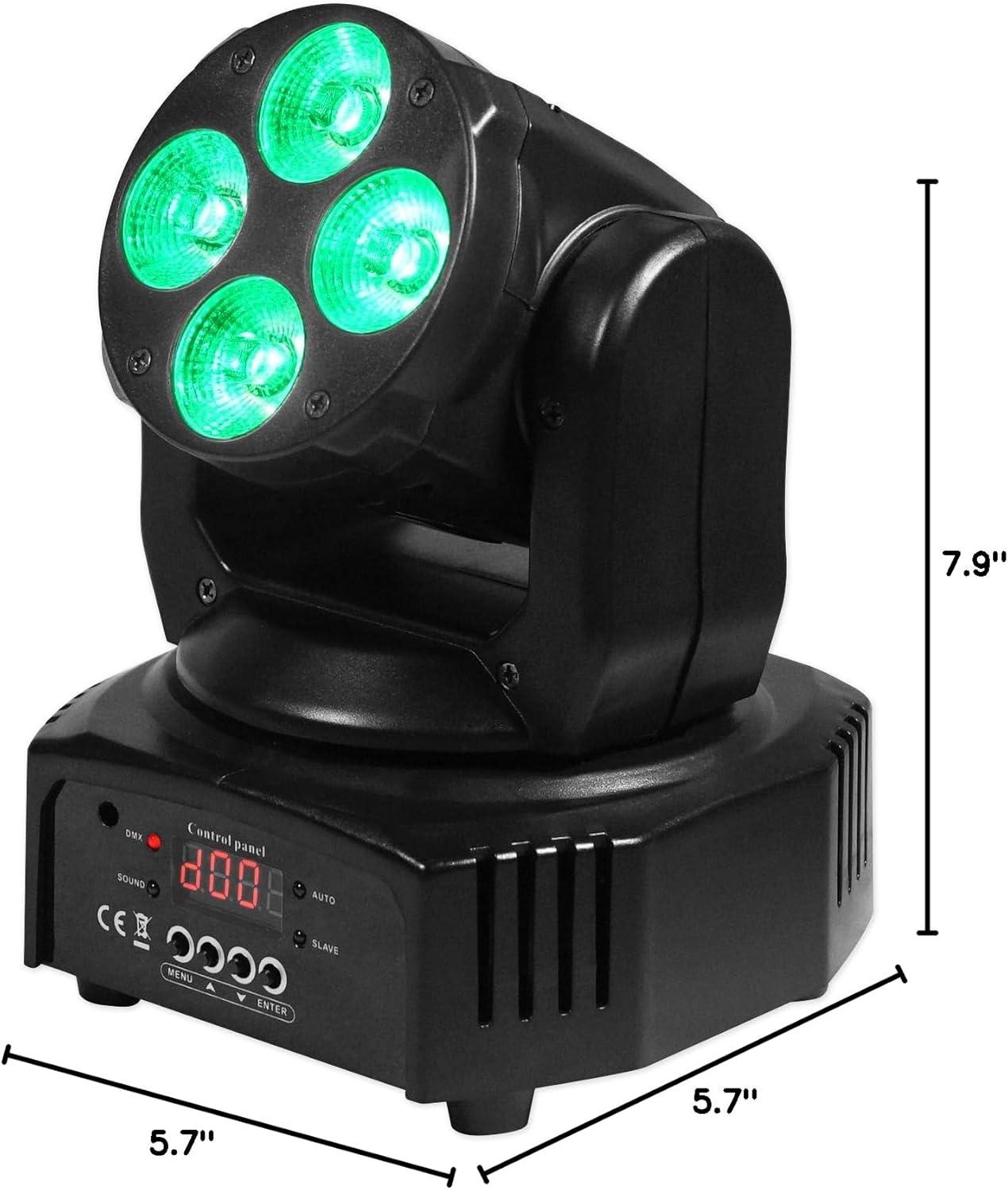 Rockville RockOn-7 40W RGBW Moving Head Wash Light, 4x10W LEDs, DMX & Sound Modes, Full-Function Remote, for DJs, Clubs, Stage Lighting