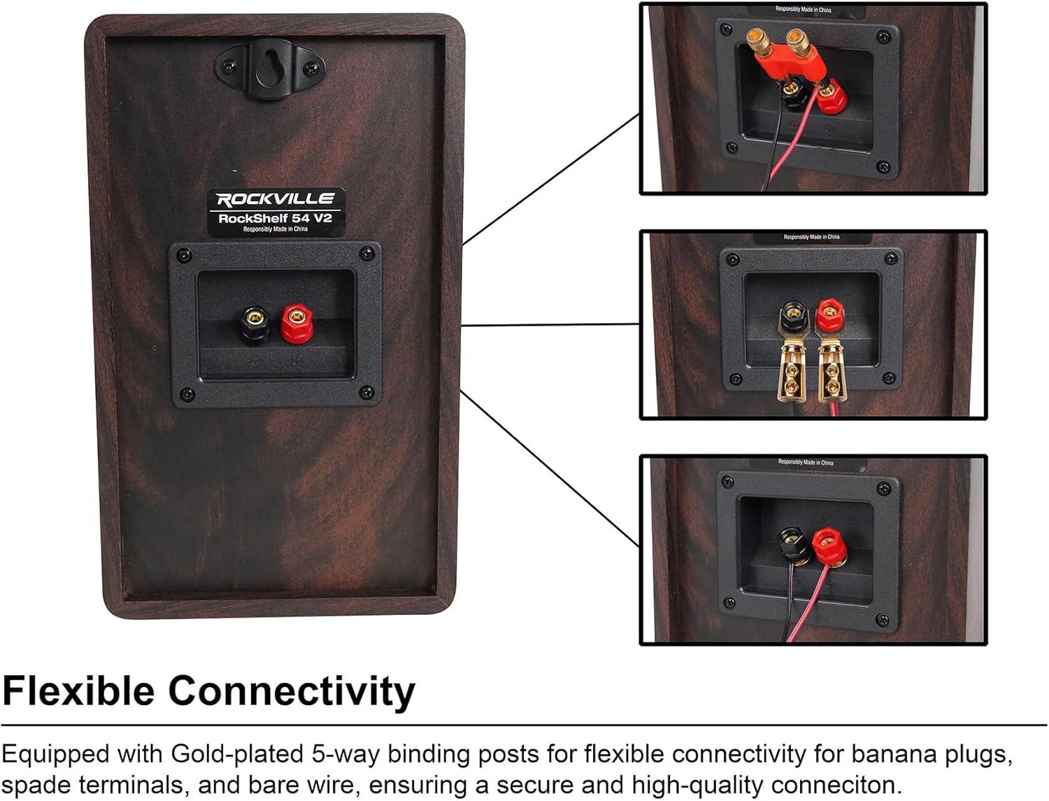 Rockville RockShelf 54C V2 360W Wood 5.25" Bookshelf Speakers/4 Ohm, Audiophile Woofer, Silk Tweeter, Wall-Mountable, for Home Theater and Music Enthusiasts(Dark Wood)