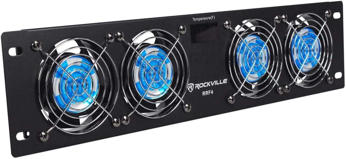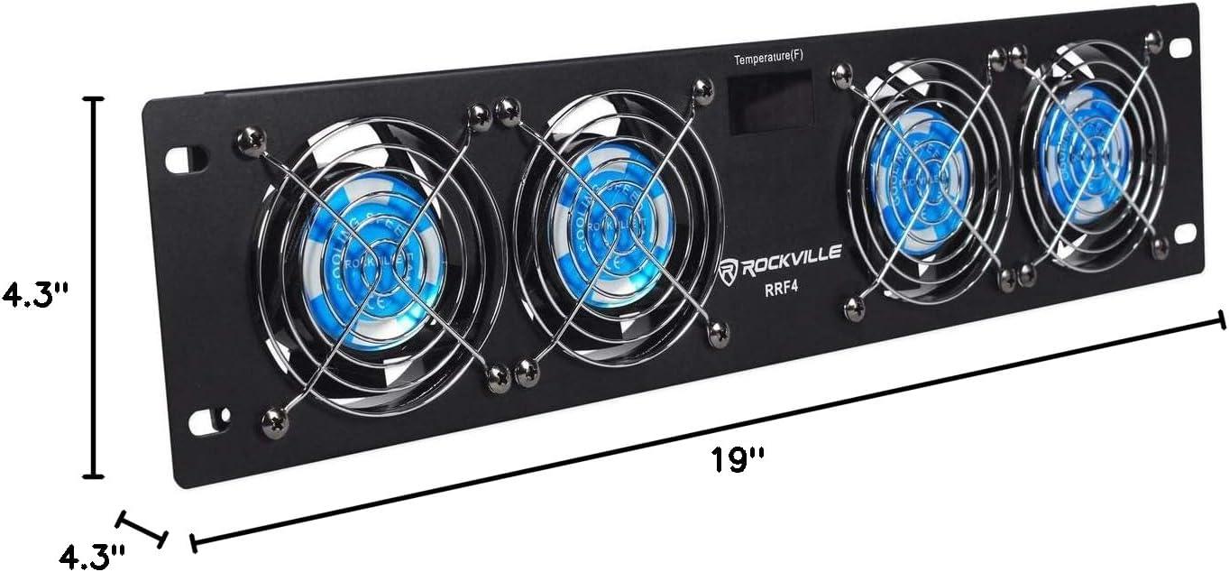 The Rockville RRF4 19-Inch Rack Mount 4-Fan Cooling System is designed to ensure reliable performance for your rack-mounted audio, video, and network equipment. Featuring four high-performance fans and a built-in LED temperature display, it helps prevent overheating by providing real-time temperature monitoring. Made from durable steel, this 1U rack unit fits perfectly into any standard 19-inch rack and is ideal for use in studios, home theaters, and live sound setups. With easy installation and compatibility with AV receivers, amplifiers, and servers, this cooling system helps maintain the longevity and performance of your gear.