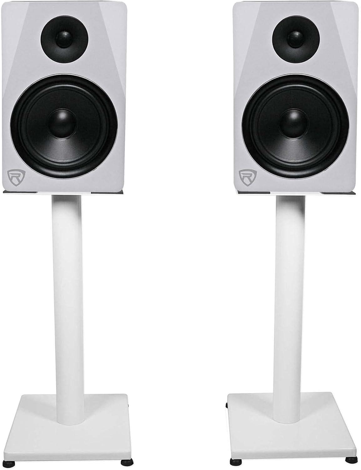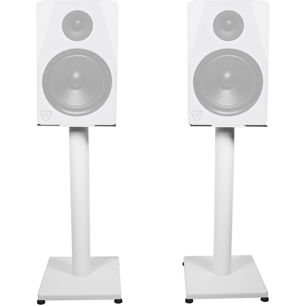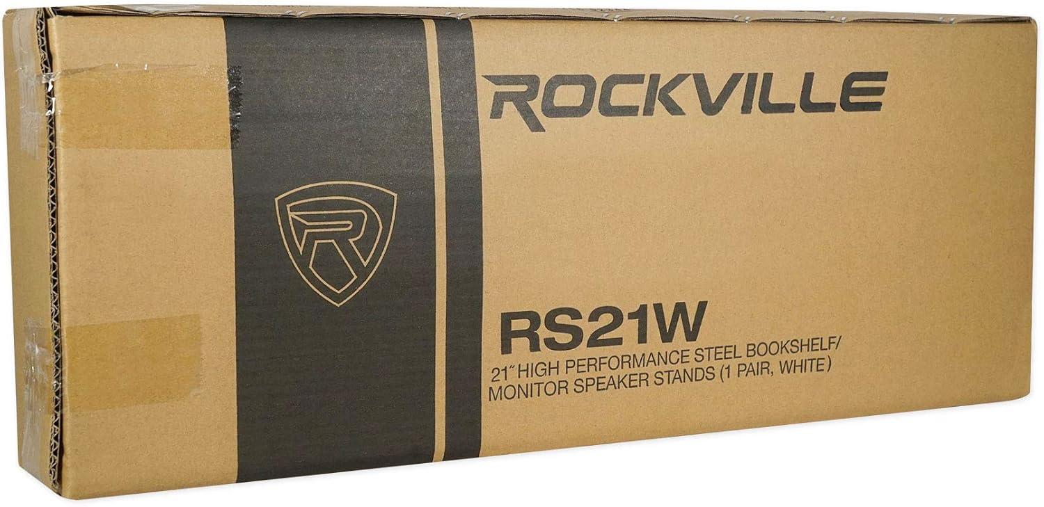 Rockville RS21W 21 inch Steel Bookshelf Speaker Stands, 60 lbs Capacity, Anti-Vibration Foam, Cable Management, for Home Audio and Studio Monitoring(White)