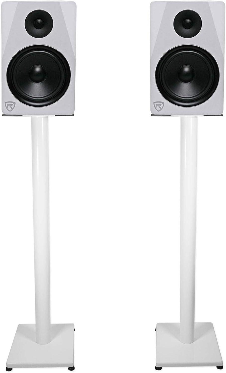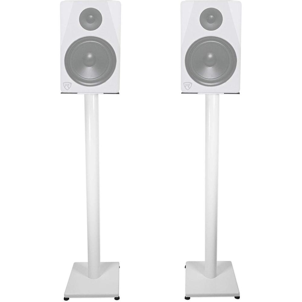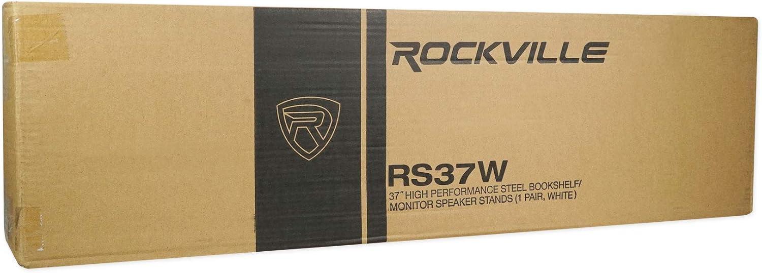 Rockville RS37B 37″ Steel Bookshelf Speaker Stands, 60 lbs Capacity, Cable Management, Anti-Vibration Pads, Adjustable Feet, for Home Audio and Studio Monitoring (Pair)(White)
