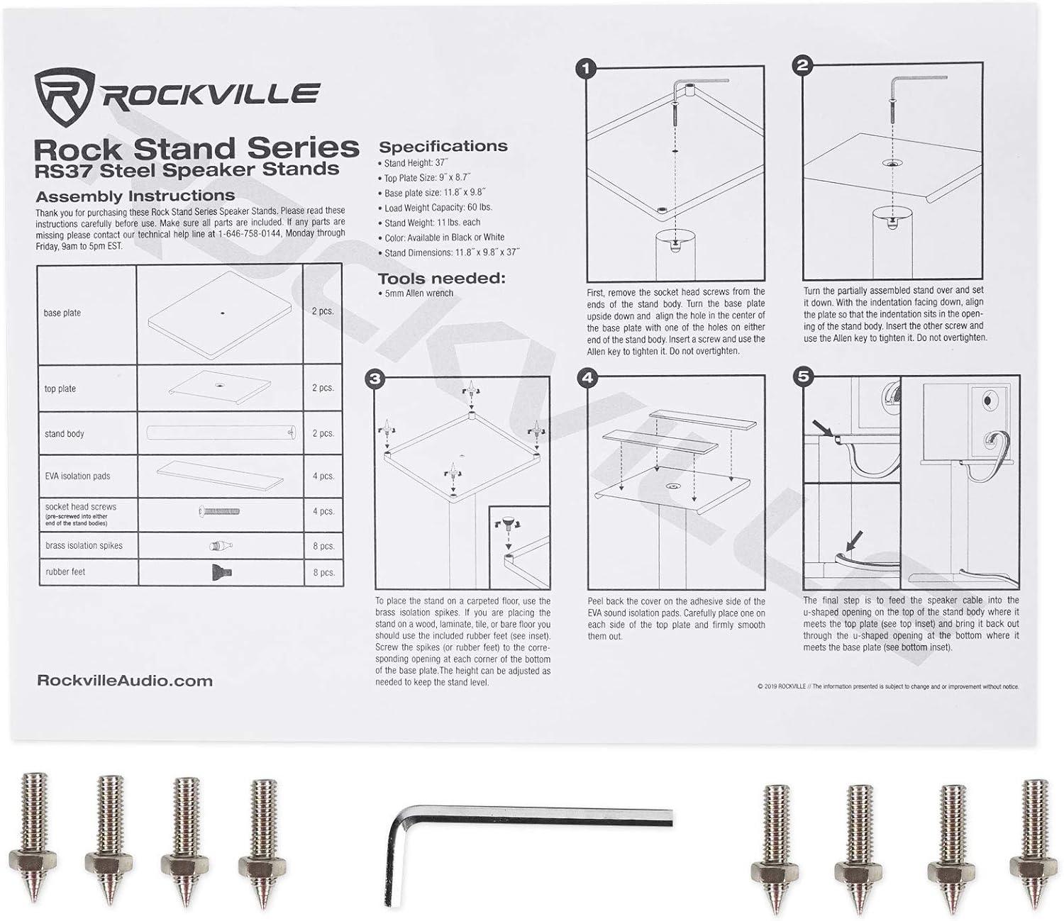 Be the first to review “Rockville RS37B 37″ Steel Bookshelf Speaker Stands, 60 lbs Capacity, Cable Management, Anti-Vibration Pads, Adjustable Feet, for Home Audio and Studio Monitoring (Pair)(White)”
