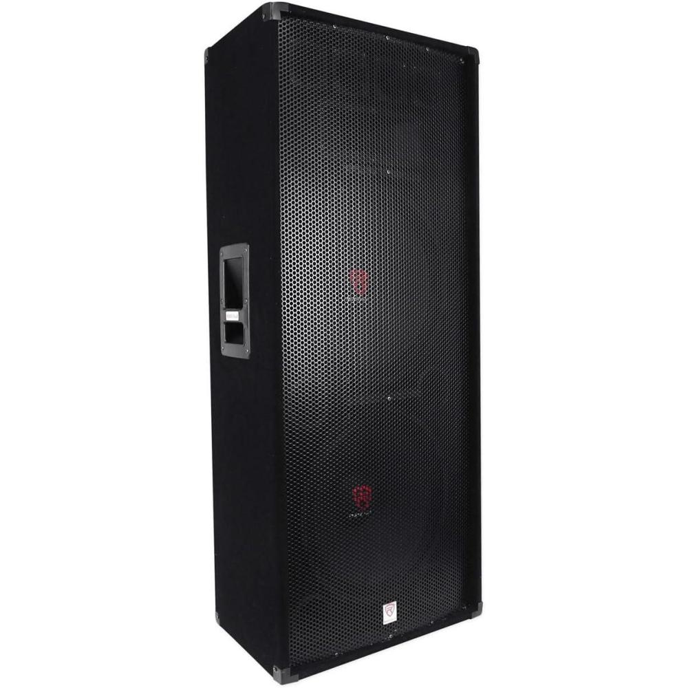 The Rockville RSG15.24 Dual 15″ 3000W 3-Way Passive Pro Audio Speaker is built for DJs, live performers, and event organizers seeking high-powered, reliable sound. It features dual 15″ woofers, three piezo bullet tweeters, and a high-efficiency piezo compression horn for a full-range, dynamic sound profile. The 3-way crossover system ensures balanced bass, clear mids, and crisp highs, with wide sound dispersion to cover large spaces.