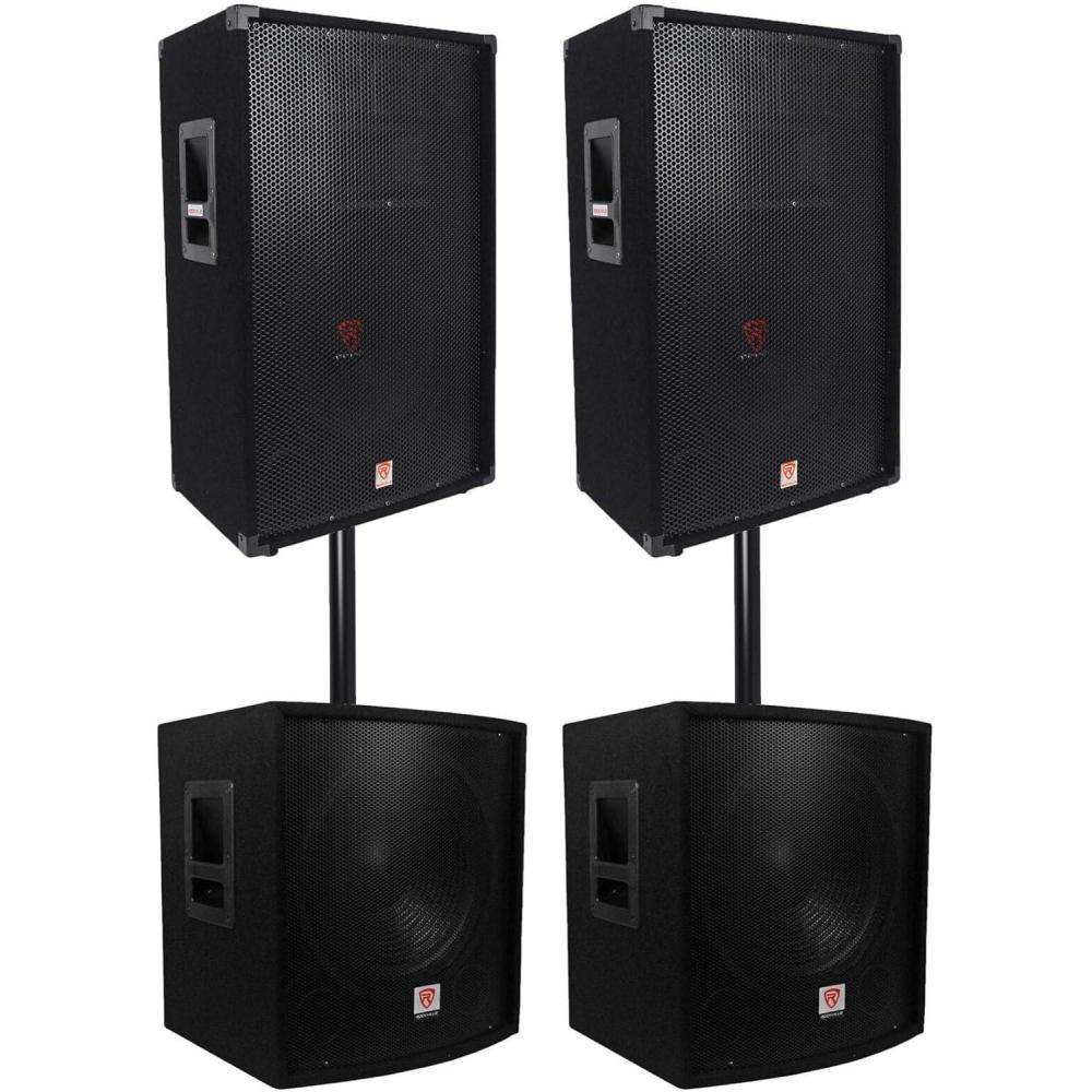 Package Includes: (2) Rockville RSG15 3-Way 8-Ohm Passive DJ/Pro Audio PA Speakers Totaling 3000W, (2) Rockville SBG1158 Passive Pro DJ Subwoofers Totaling 1600W, (2) Rockville RSP20 20″ Mounting Poles from Subwoofer to Speaker, Heavy Duty Steel