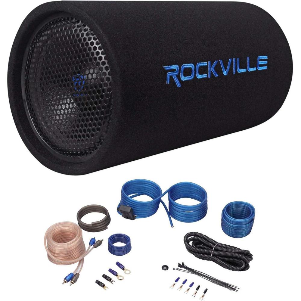 Package Includes: (1) Rockville RTB10A 10″ 500w Powered Subwoofer Tube + Bass Remote. (1) Rockville RWK10 10 Gauge 2 Channel Complete Wire Kit + RCA Cables