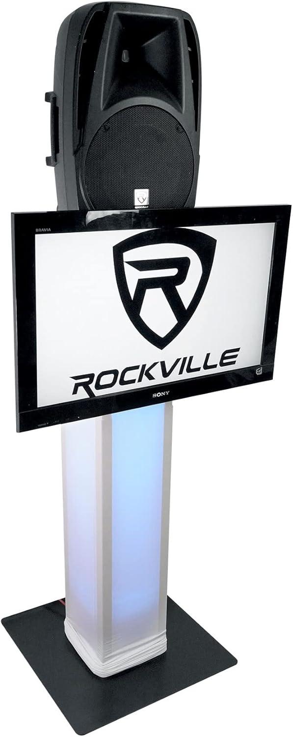 Rockville RTP33-TV Black Totem DJ Speaker/Lighting Stand, Detachable TV Mount, Adjustable Height, Stable Base, for DJs and Event Professionals(White)