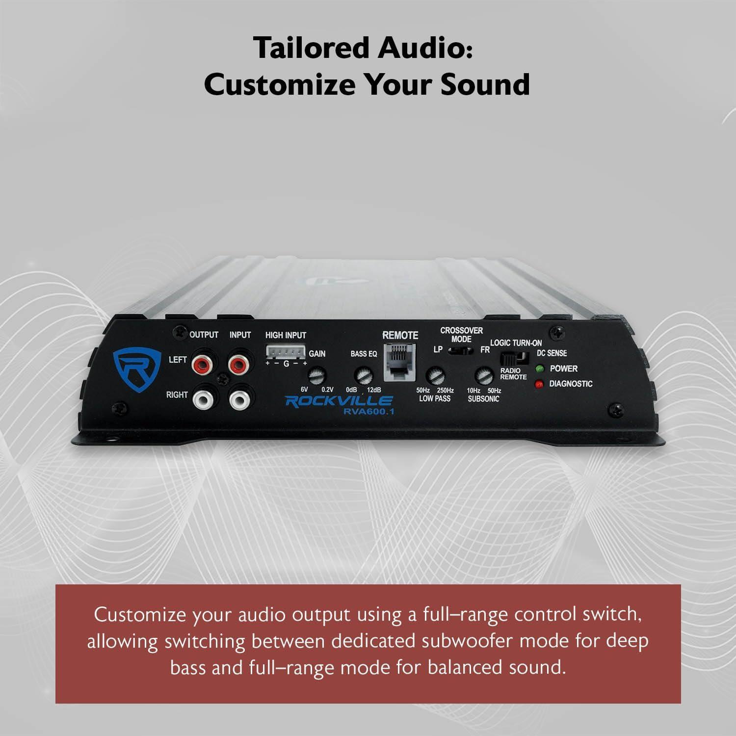 COMPLETE AUDIO PACKAGE: Includes CEA-2006 compliant Class A/B mono amplifier with adjustable low-pass crossover, subsonic filter, and dash mount bass remote for precise bass control.