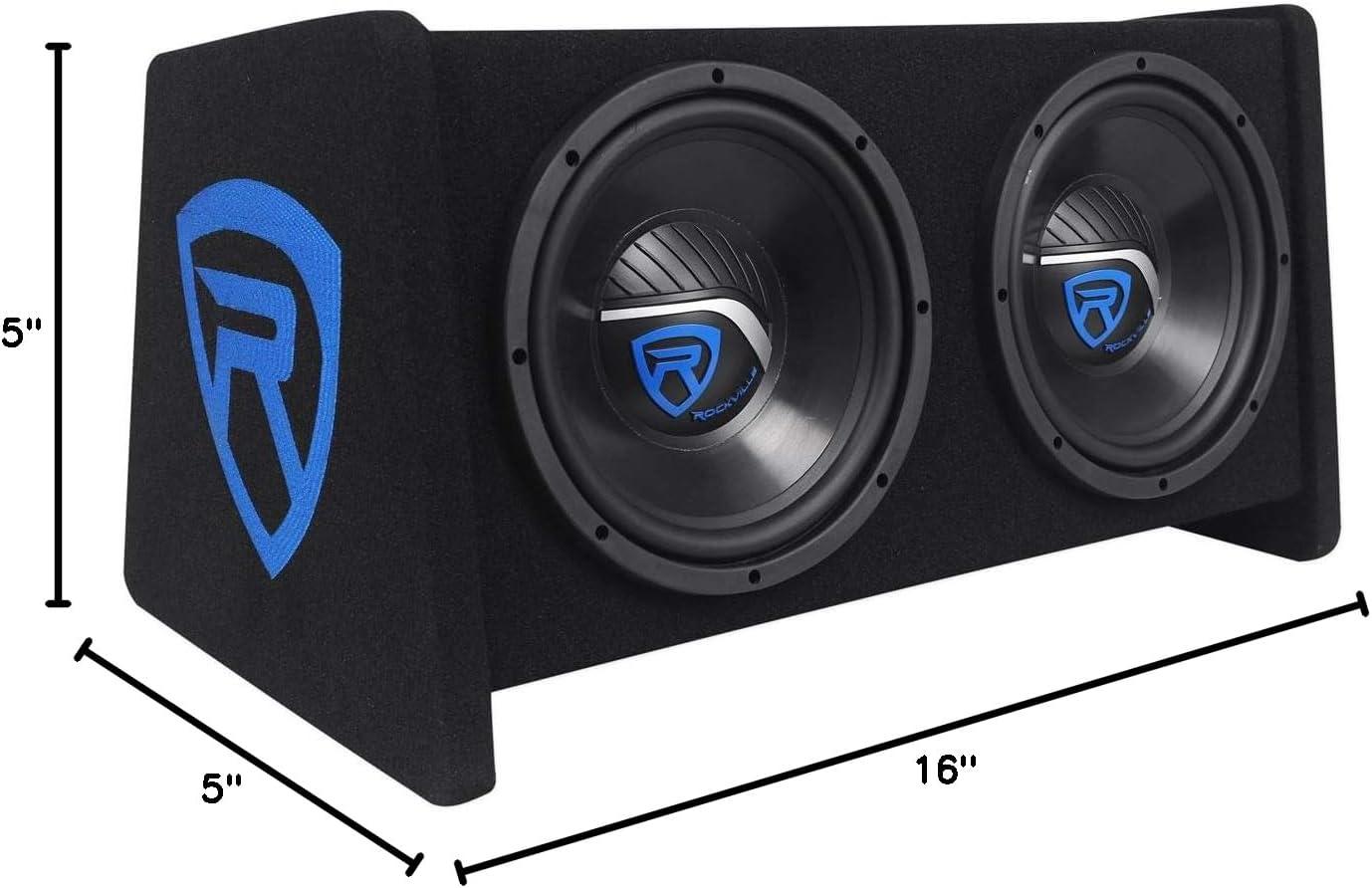Rockville RV10.2B 1000W Peak/350W RMS Dual 10″ Car Subwoofer Enclosure, Class A/B Mono Amplifier, Ported Vented Design, Dash Mount Bass Remote, Amp Kit, for Deep Bass Car Audio