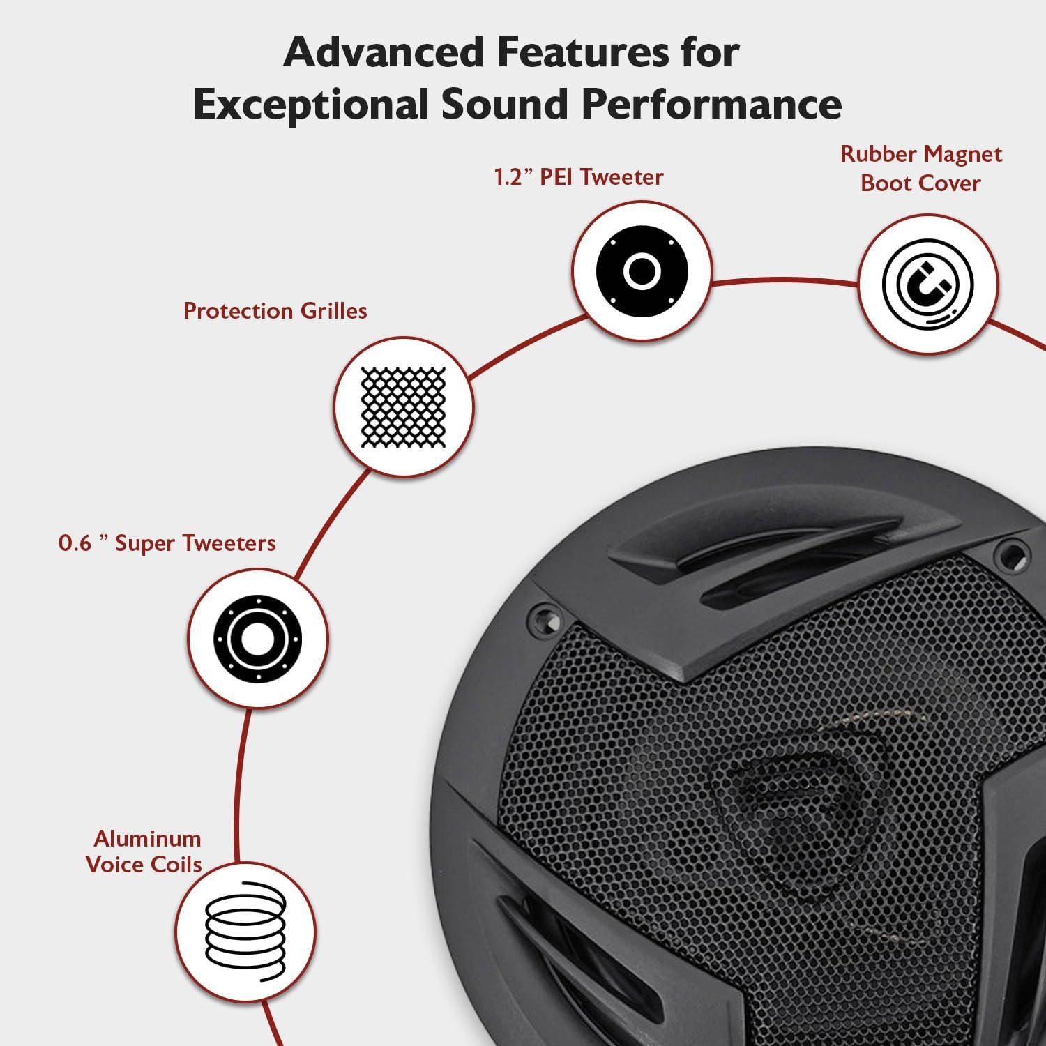 Enhanced Audio Design: Polypropylene woofer provides rich bass and mids, while 1.2” PEI dome tweeters and 0.6” super tweeters deliver crystal-clear highs.